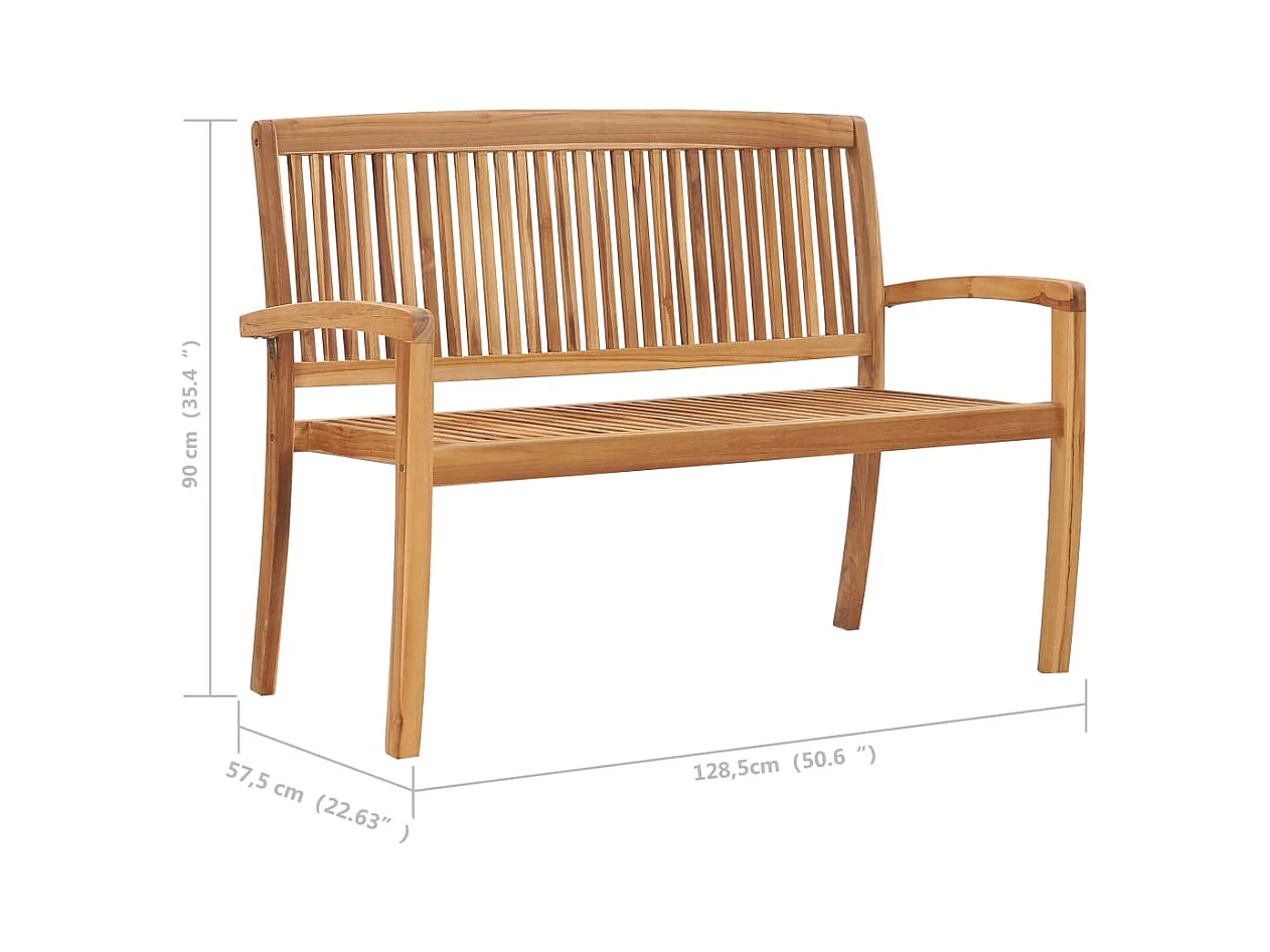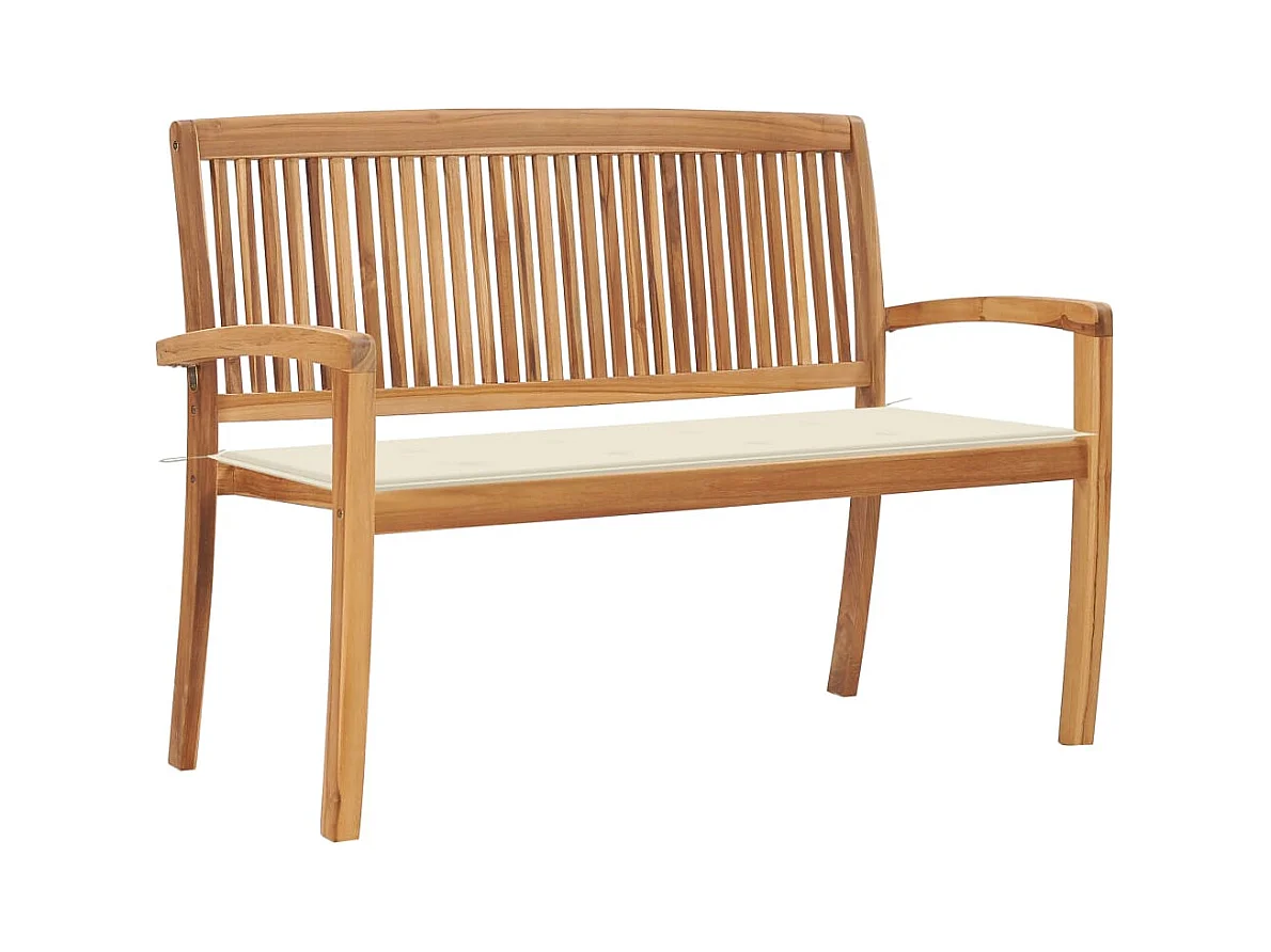 Stapelbare tuinbank met kussen 128,5 cm Massief teakhout