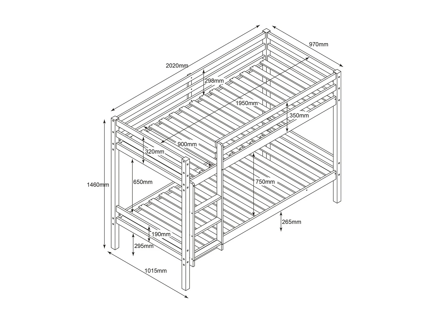 Stapelbed + 2 lades hout wit 90x190/90x190 cm
