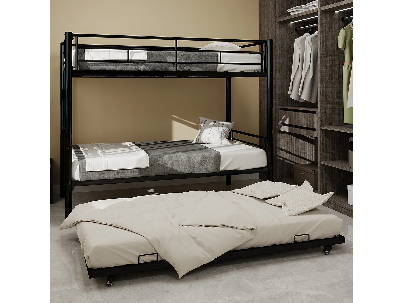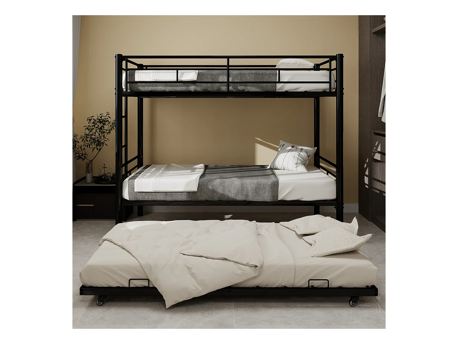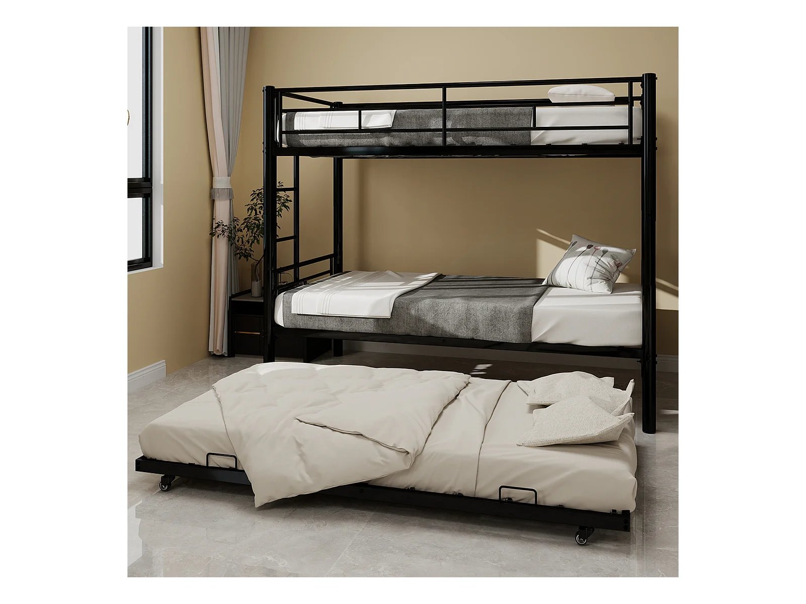 Stapelbed 2 x 90 x 190 cm - Kinderbed met ladder en leuningen - met een uitschuifbed 90 x 190 cm - zwart metaal - zonder matras