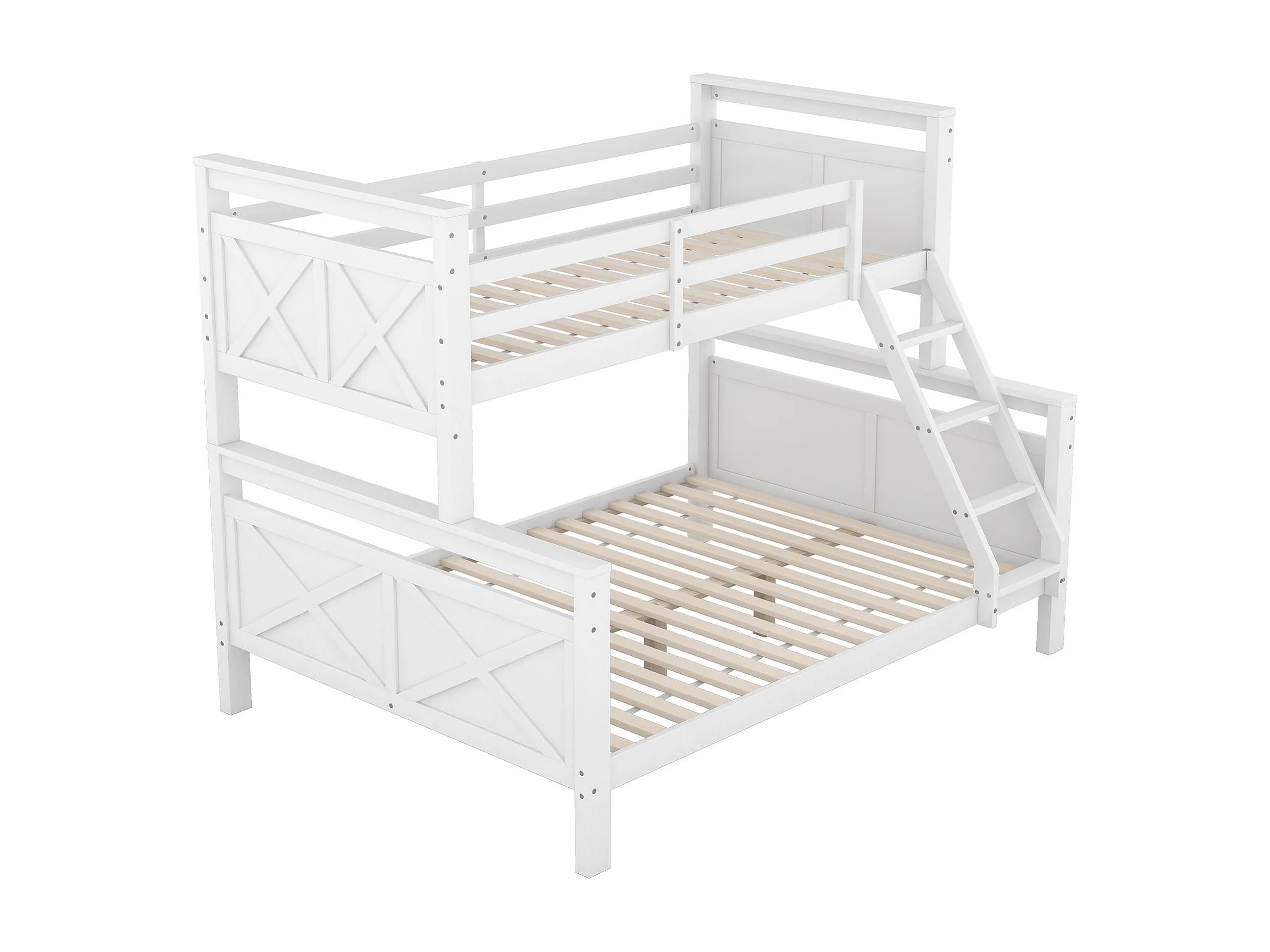 Stapelbed 90(140)x200cm, met ladder en veiligheidshekje, houten bed, kinderbed, wit, zonder matras