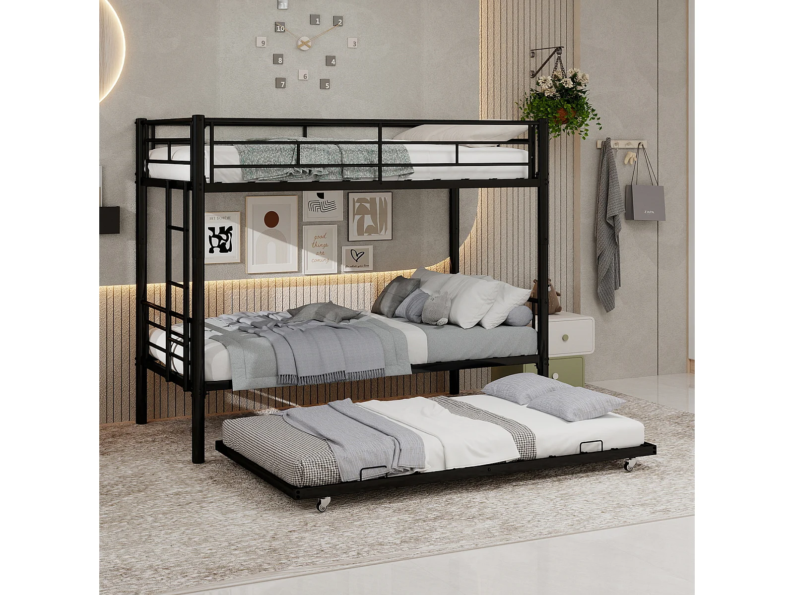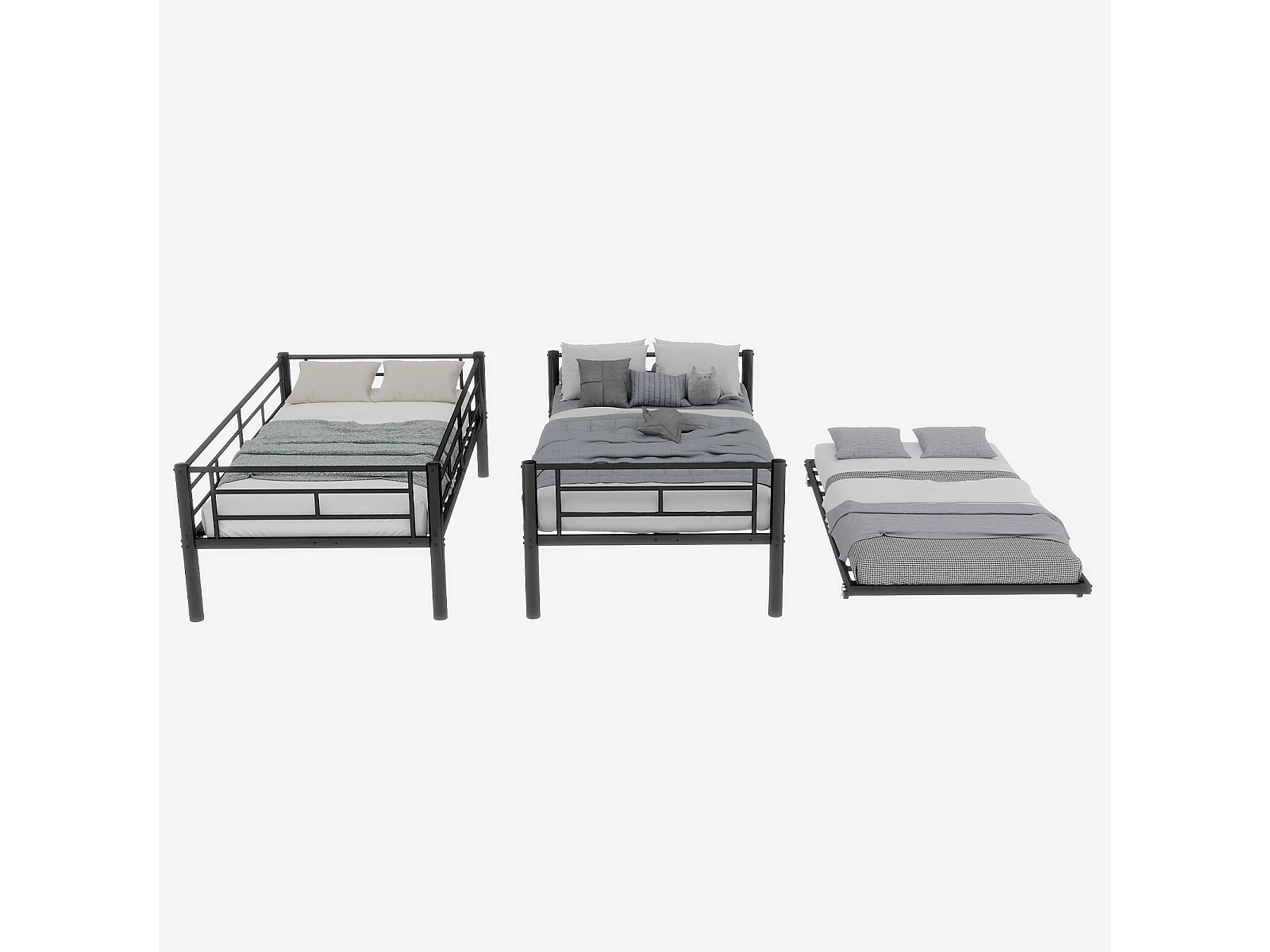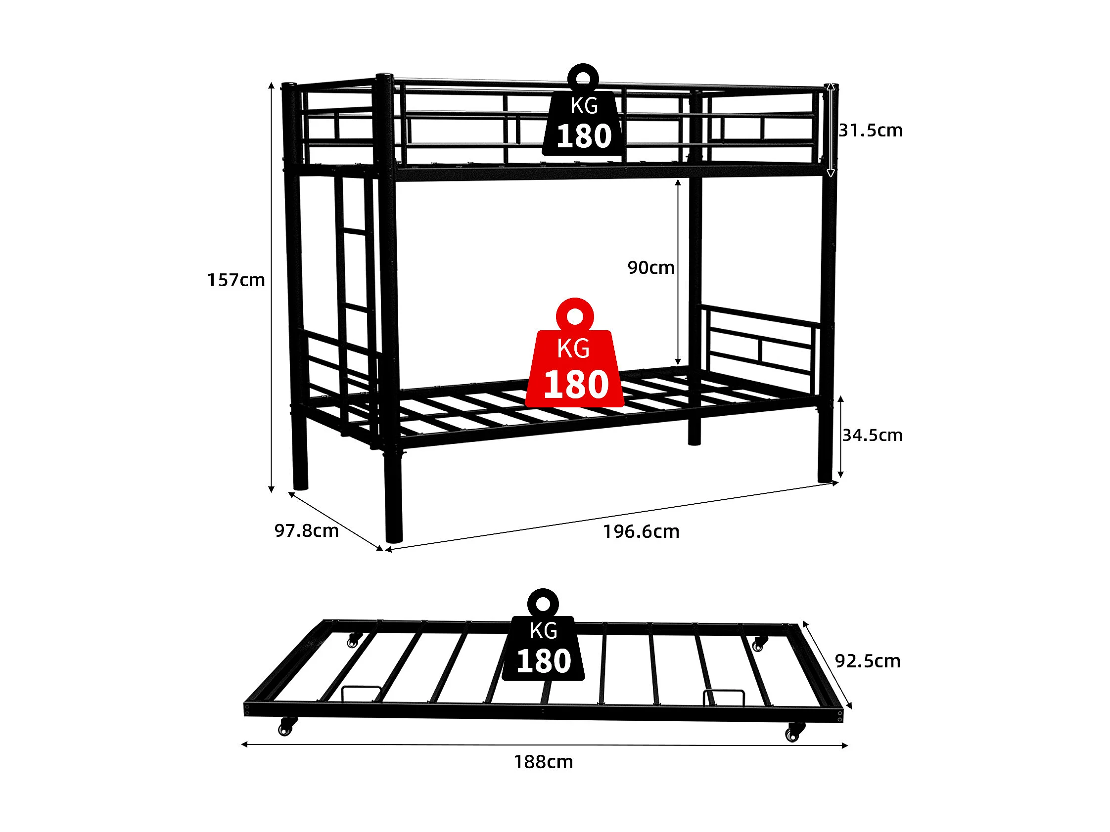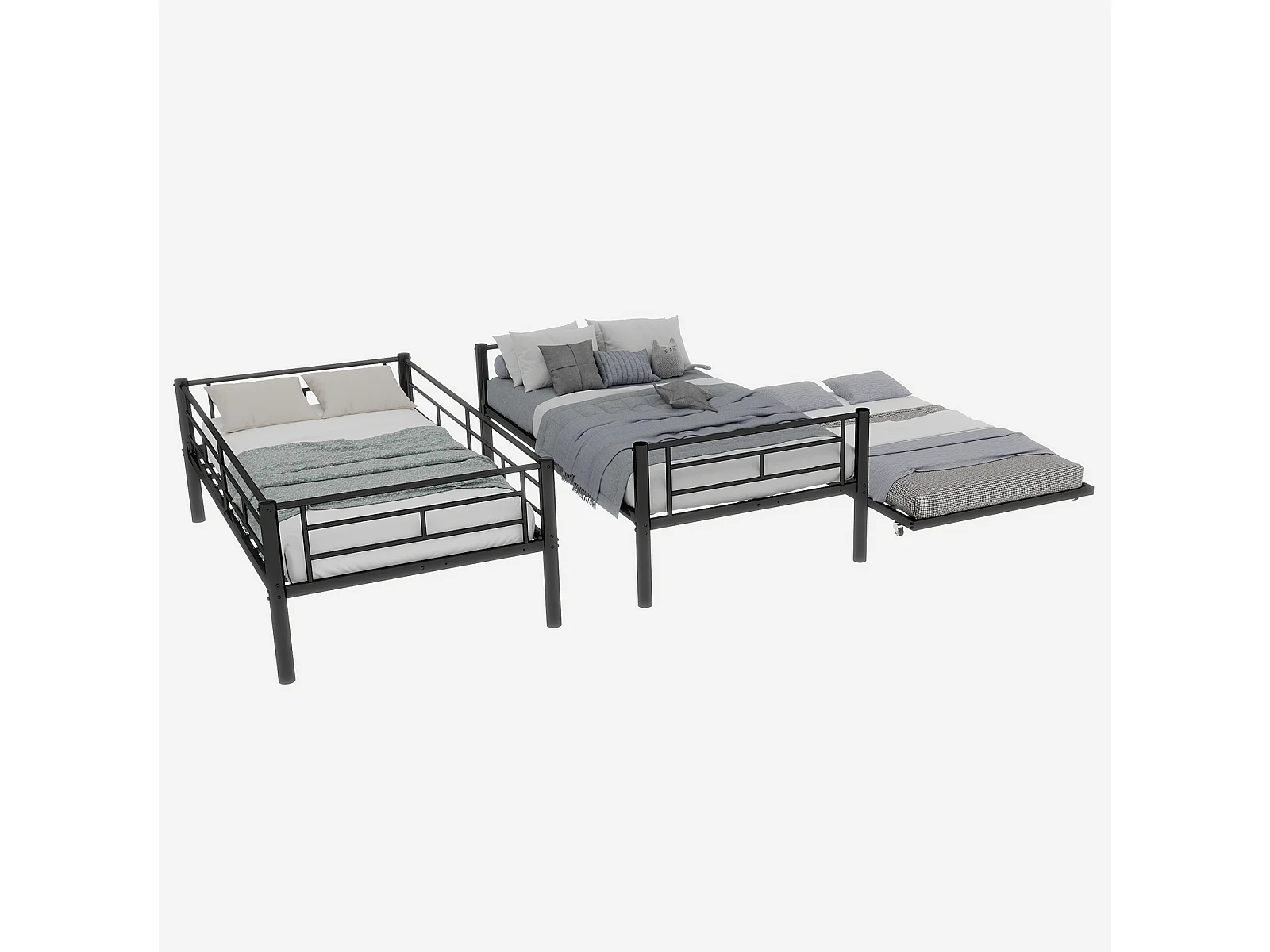 Stapelbed 90x190 cm met uitschuifbed 90x190 cm - Metalen kinderbed - Zwart