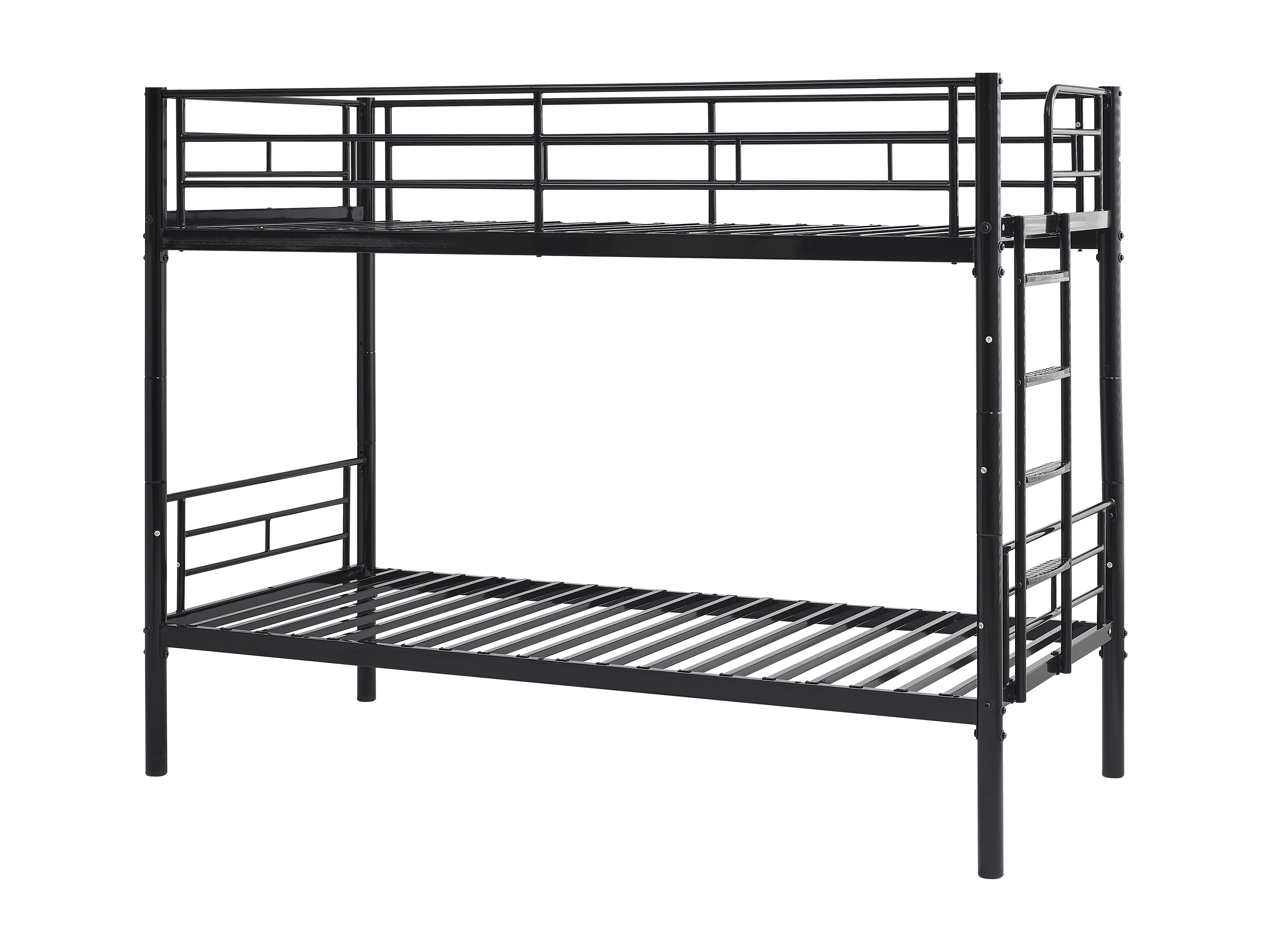 Stapelbed 90x200 cm voor kinderen met veiligheidshekken – om te bouwen tot 2 eenpersoonsbedden, lattenbodem, antislip ladder – Zwart (zonder matras)