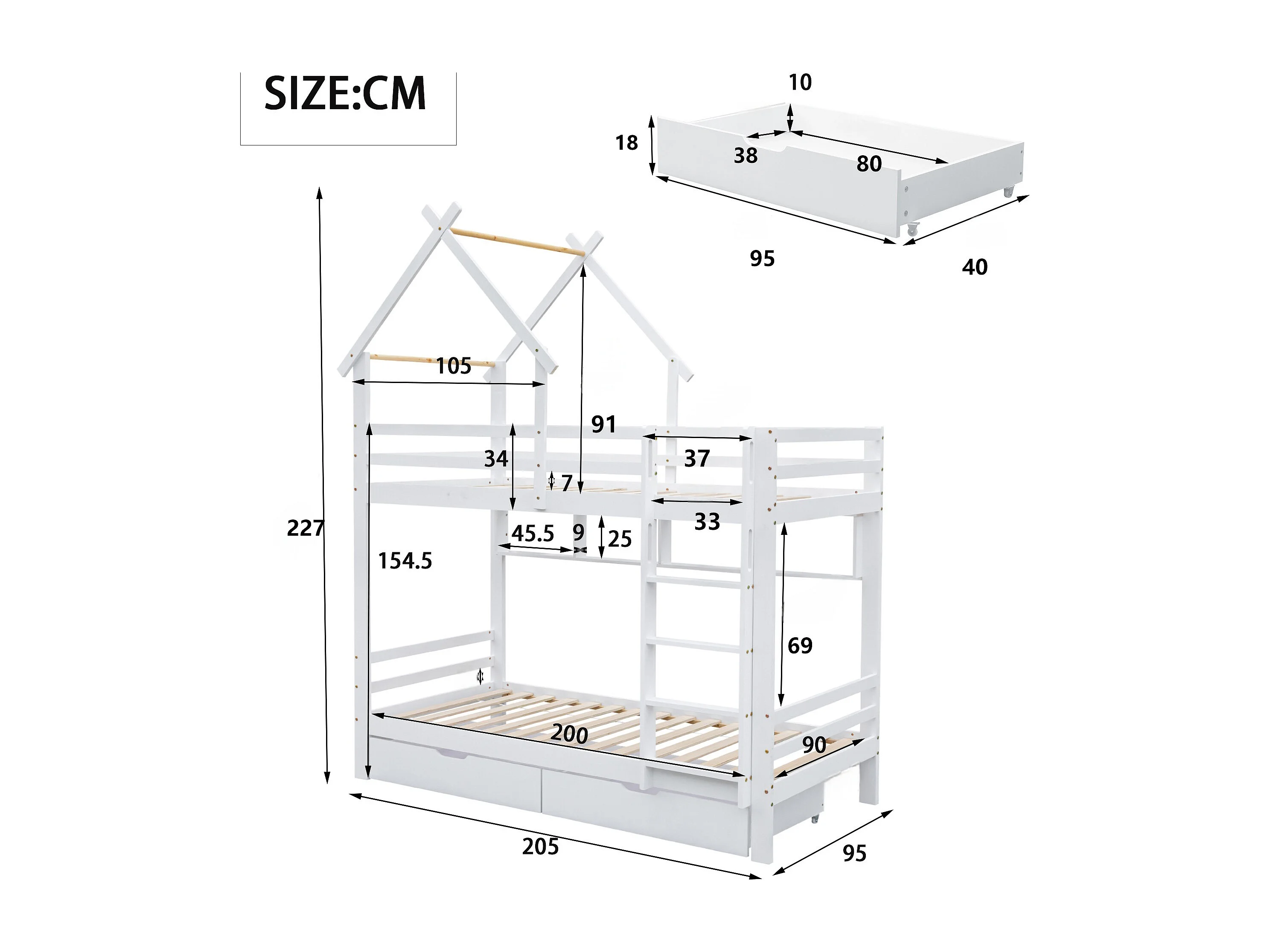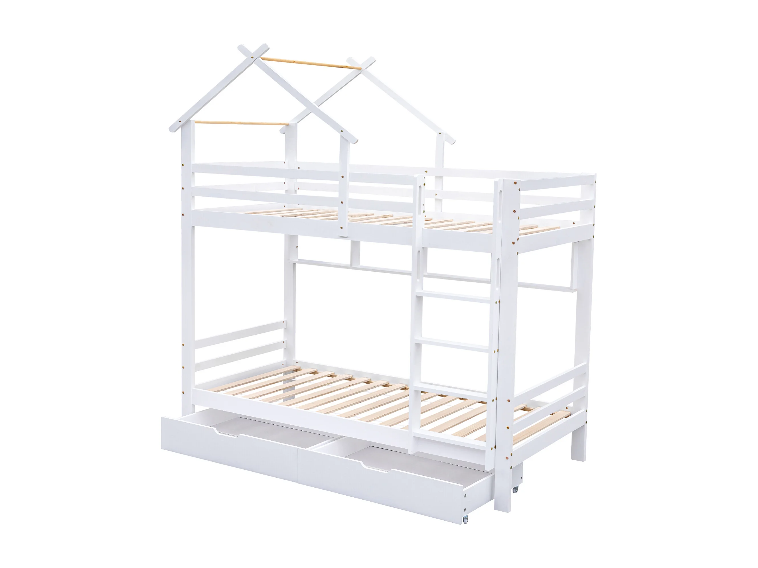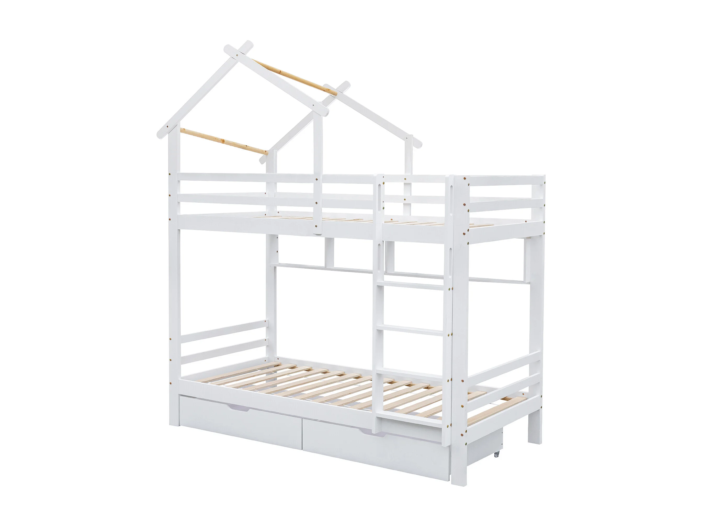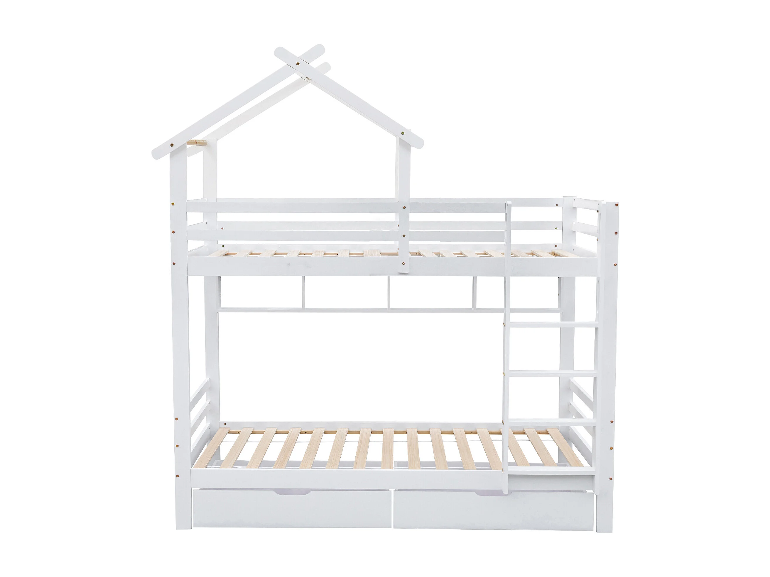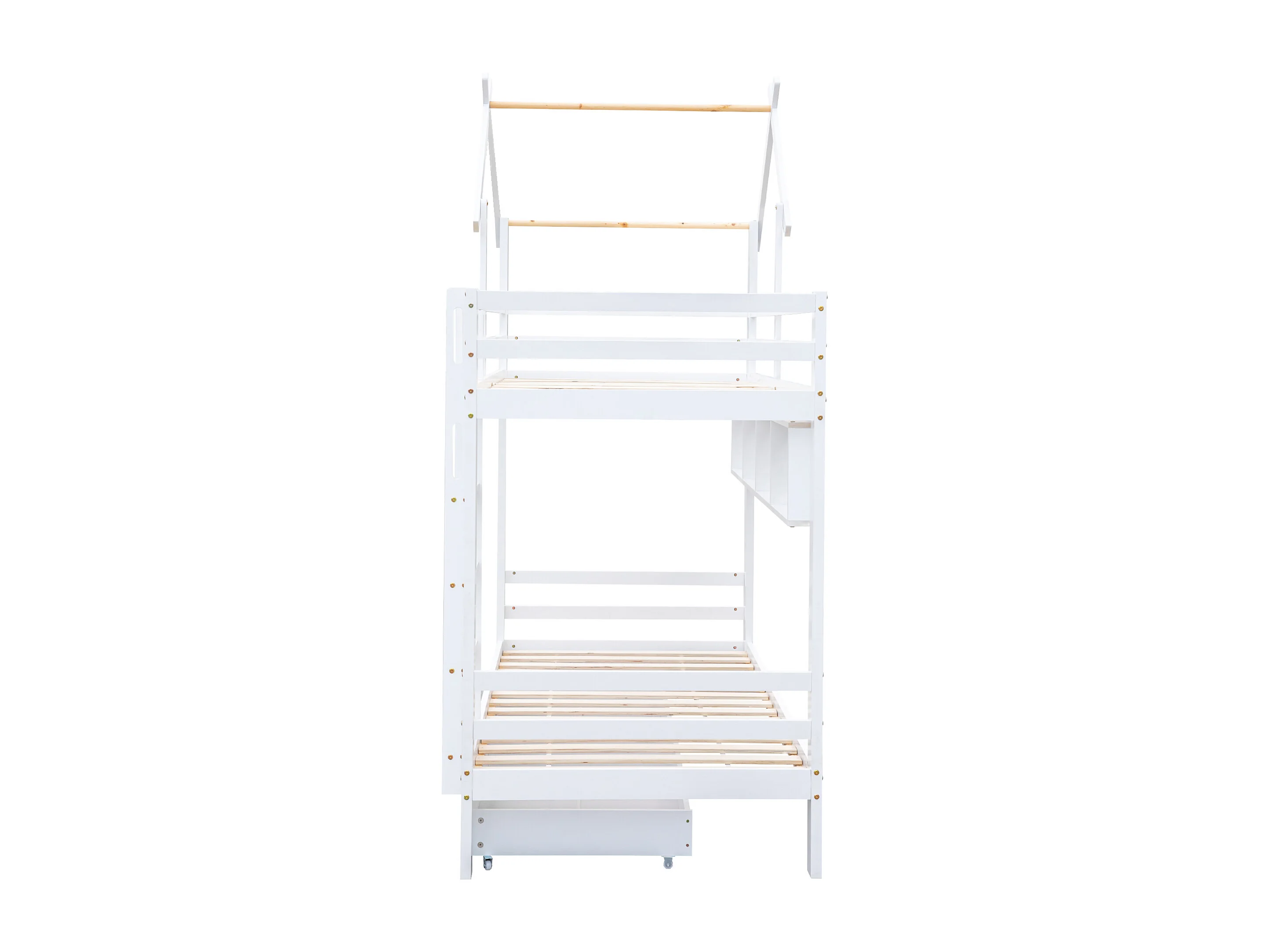 Stapelbed 90x200cm met 2 lades en planken - Kajuitbed van grenenhout en MDF - Wit