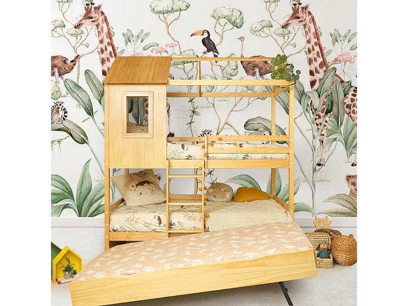 Stapelbed + hefbaar onderschuifbed hout grenen 90x190/90x190cm
