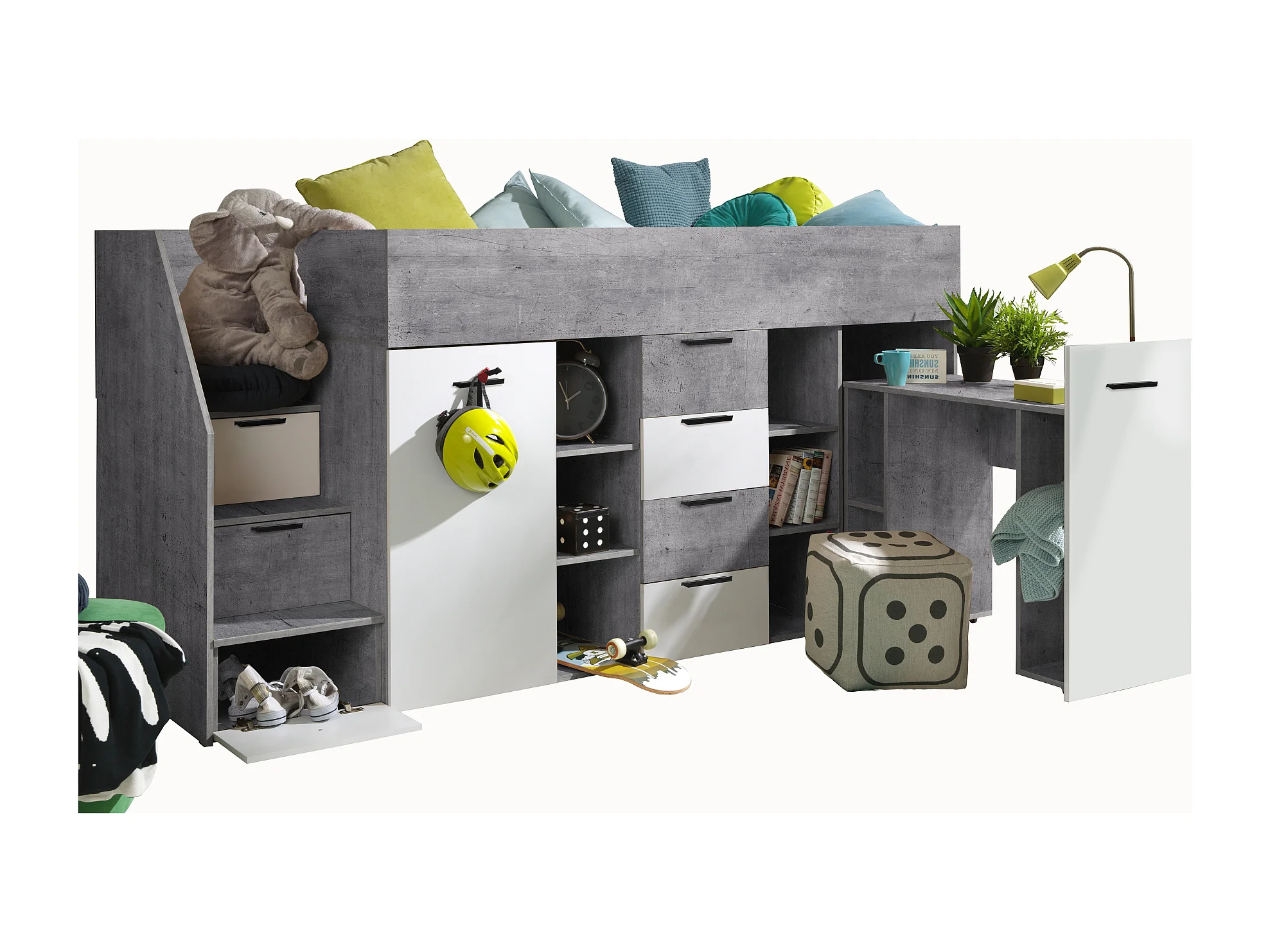 Stapelbed KONKRET 3L 248,5/123/93 (beton/wit)