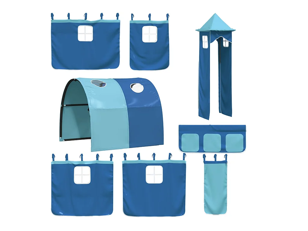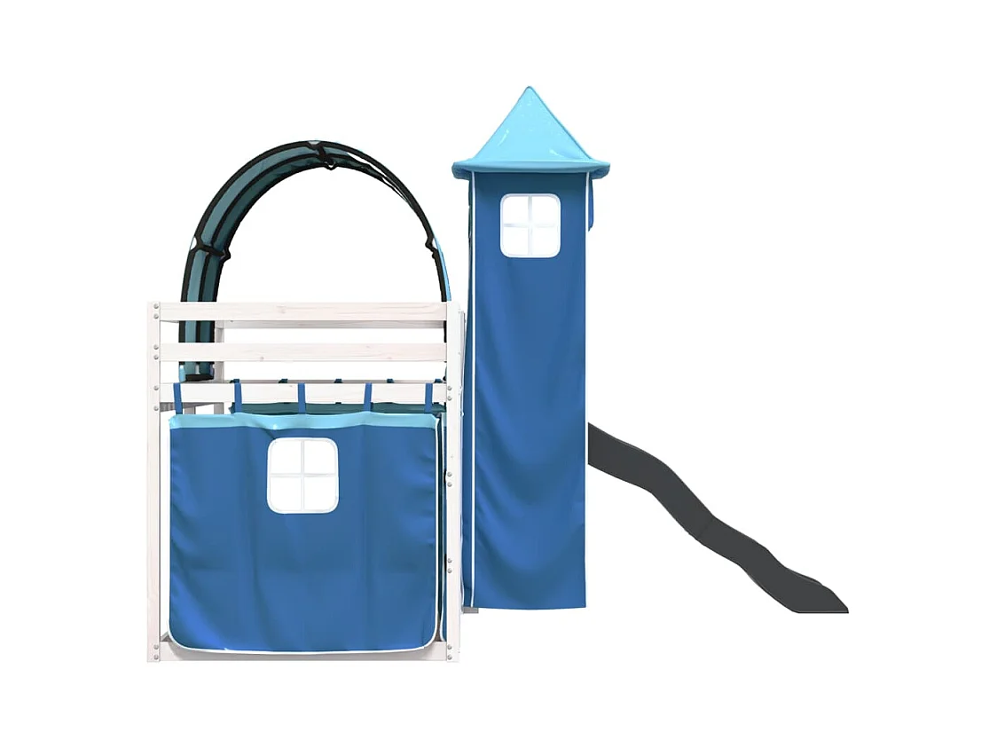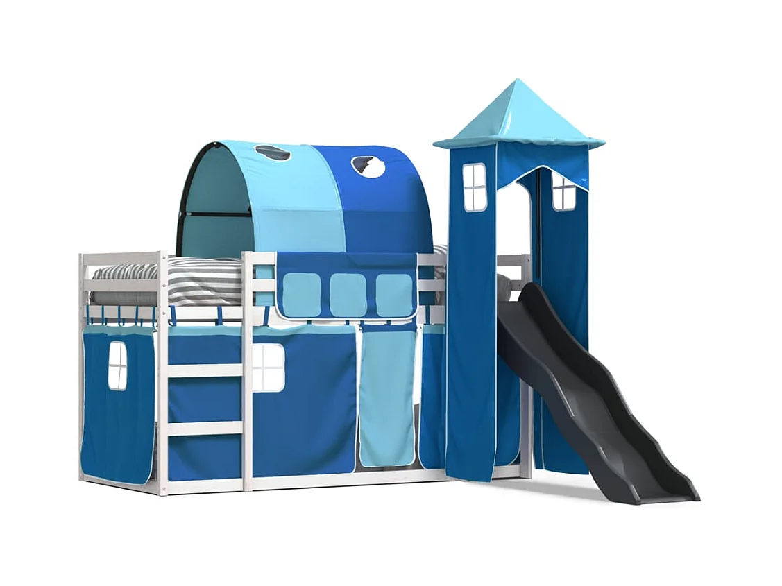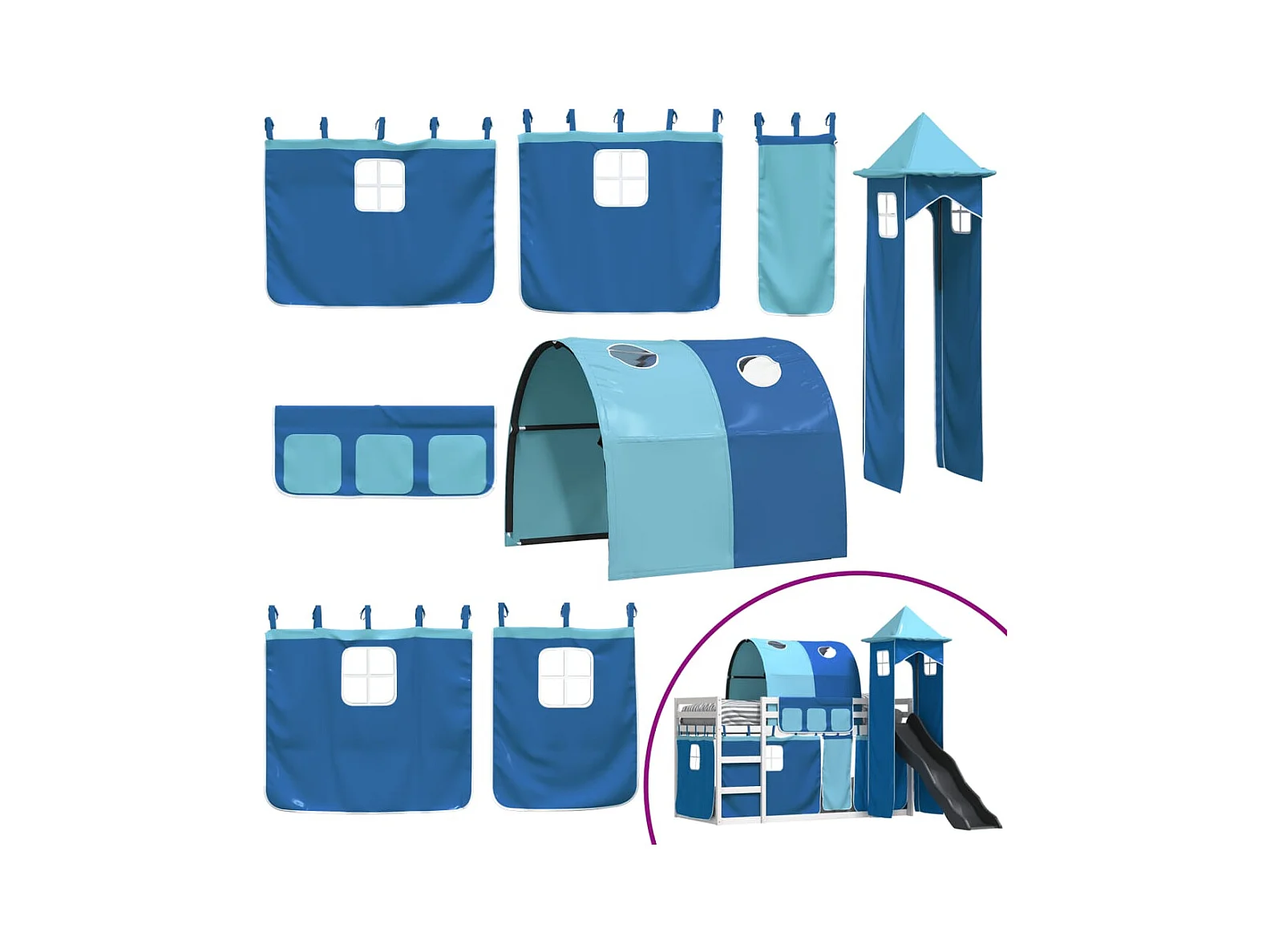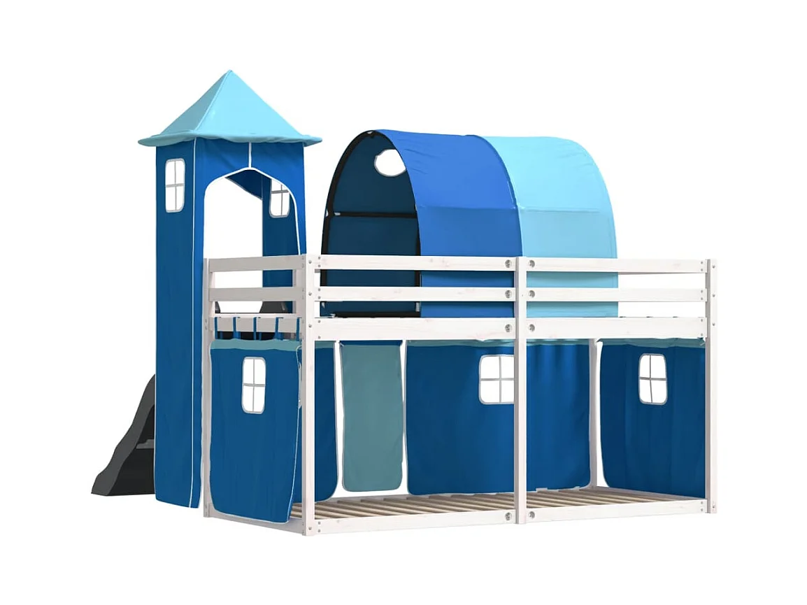 Stapelbed met glijbaan en gordijnen blauw 80x200 cm