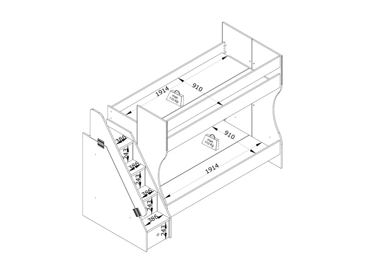 Stapelbed van spaanplaat wit 90x190/90x190cm