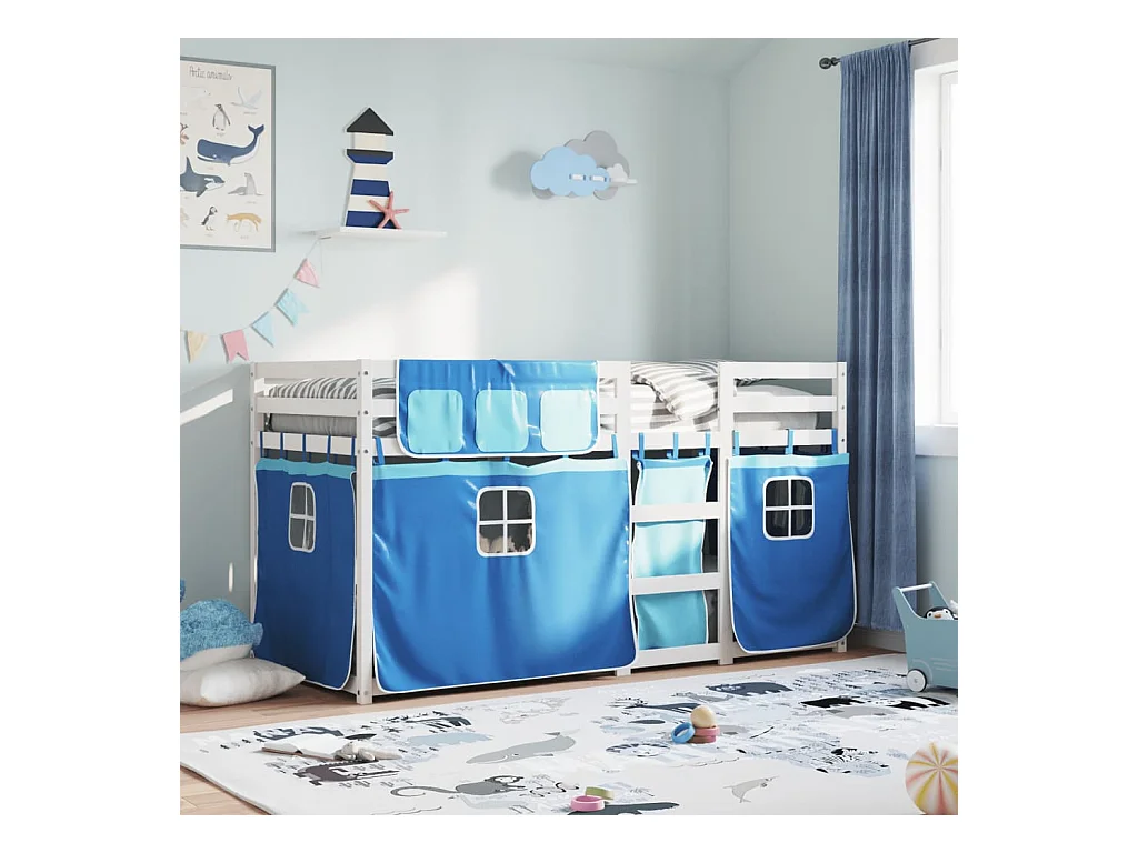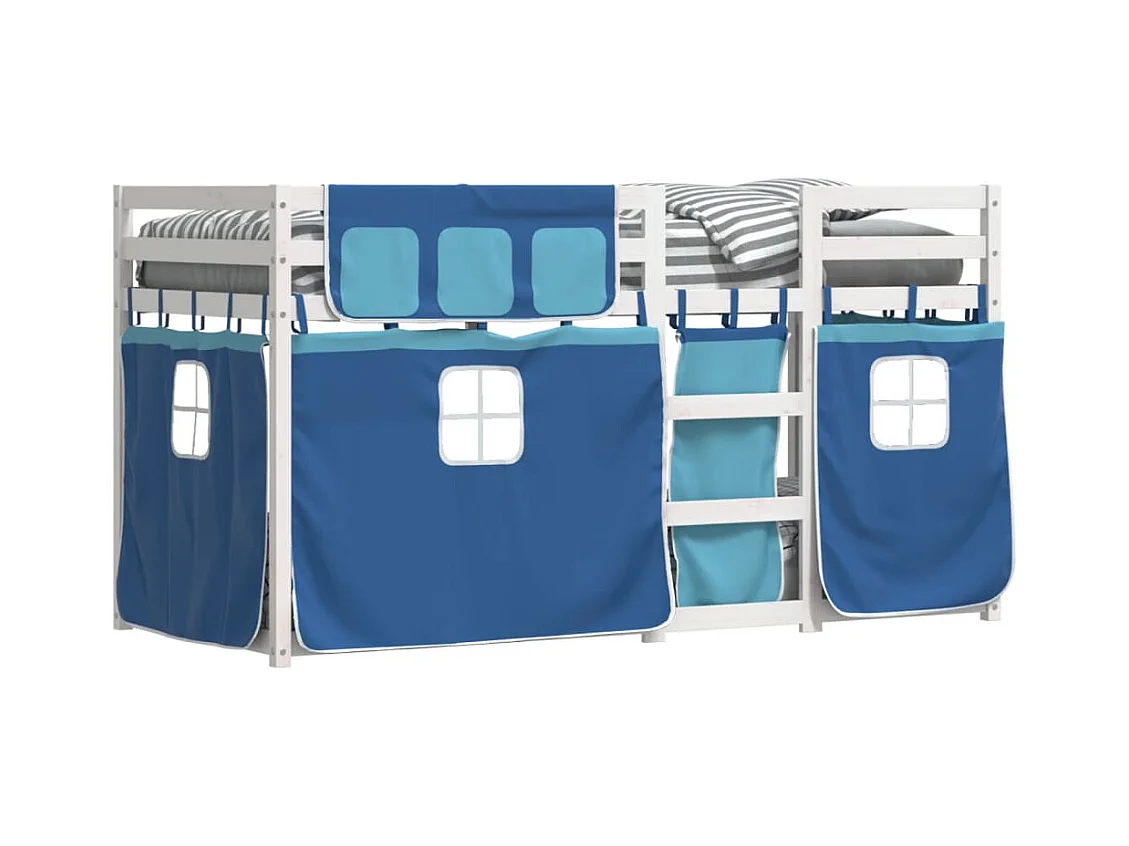 Stapelbed zonder matras met glijbaan en gordijnen 90x200 cm