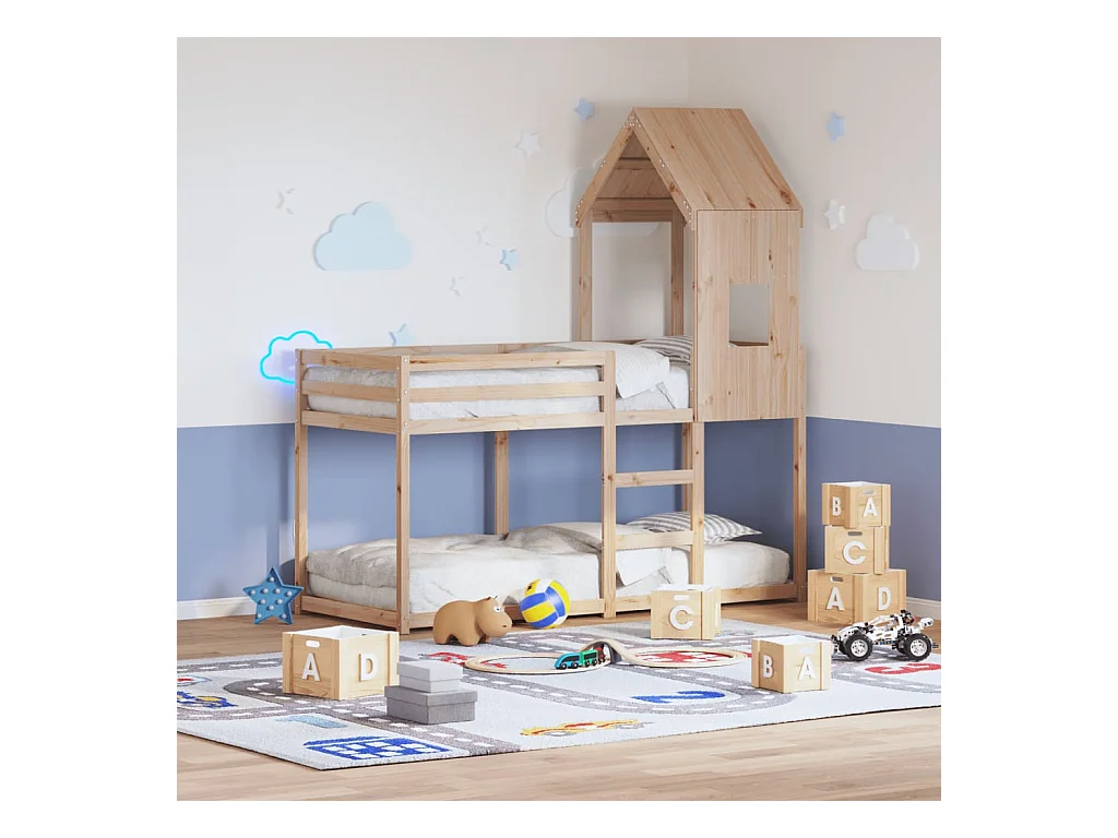 Stapelbed met ladder en dak zonder matras 90x200 cm