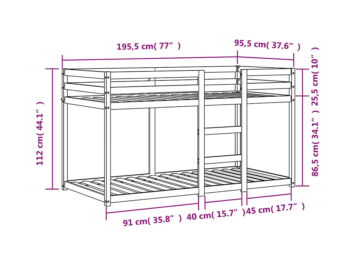 Stapelbed zonder matras 90x190 cm massief grenenhout
