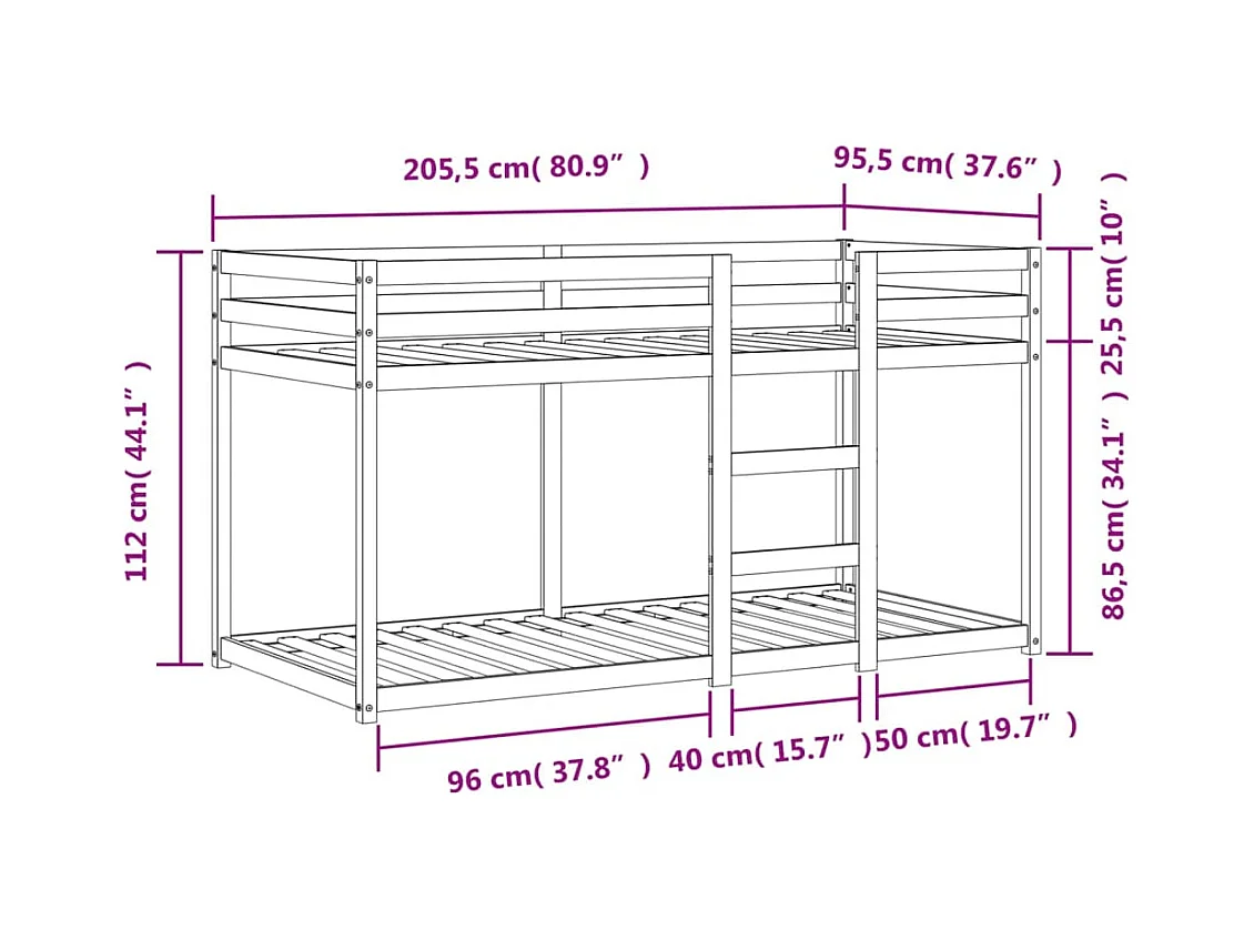Stapelbed zonder matras 90x200 cm massief grenenhout