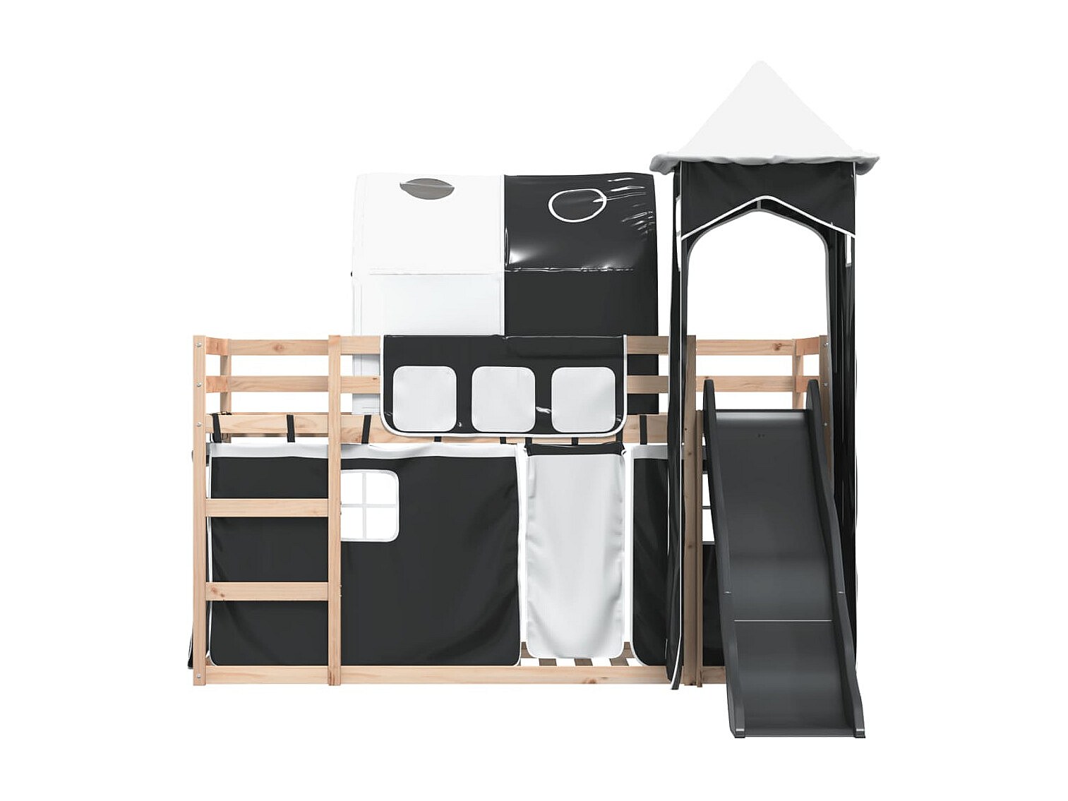 Stapelbed zonder matras met glijbaan wit zwart 90x190 cm