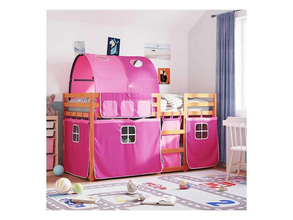 Stapelbed zonder matras roze 75x190 cm massief grenenhout