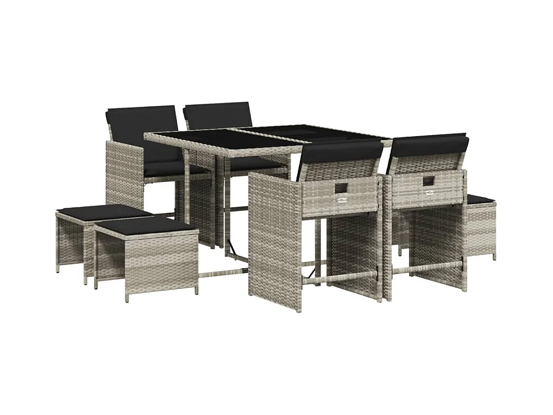 Steno 9-delige Tuinset met kussens poly rattan lichtgrijs