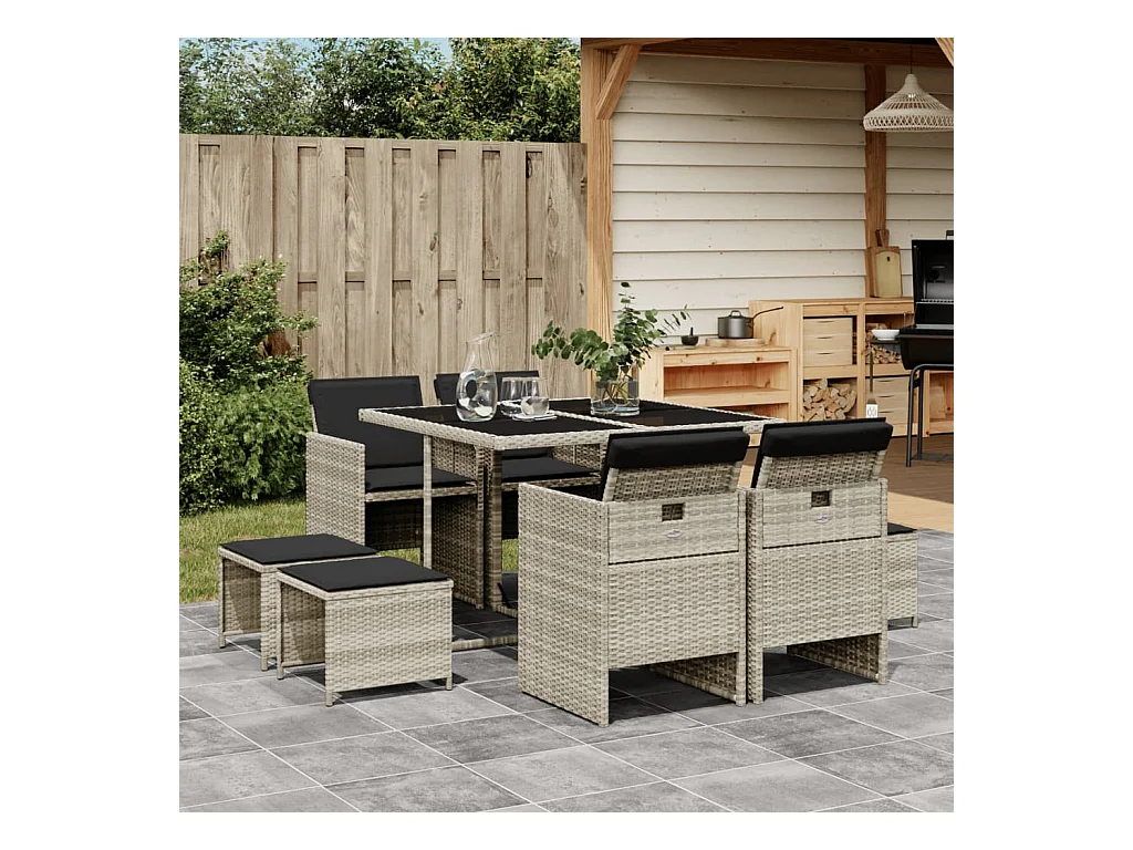Brienne 9-delige Tuinset met kussens poly rattan lichtgrijs
