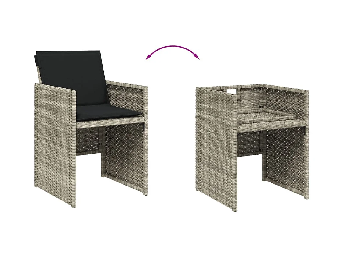 Zenn 9-delige Tuinset met kussens poly rattan lichtgrijs