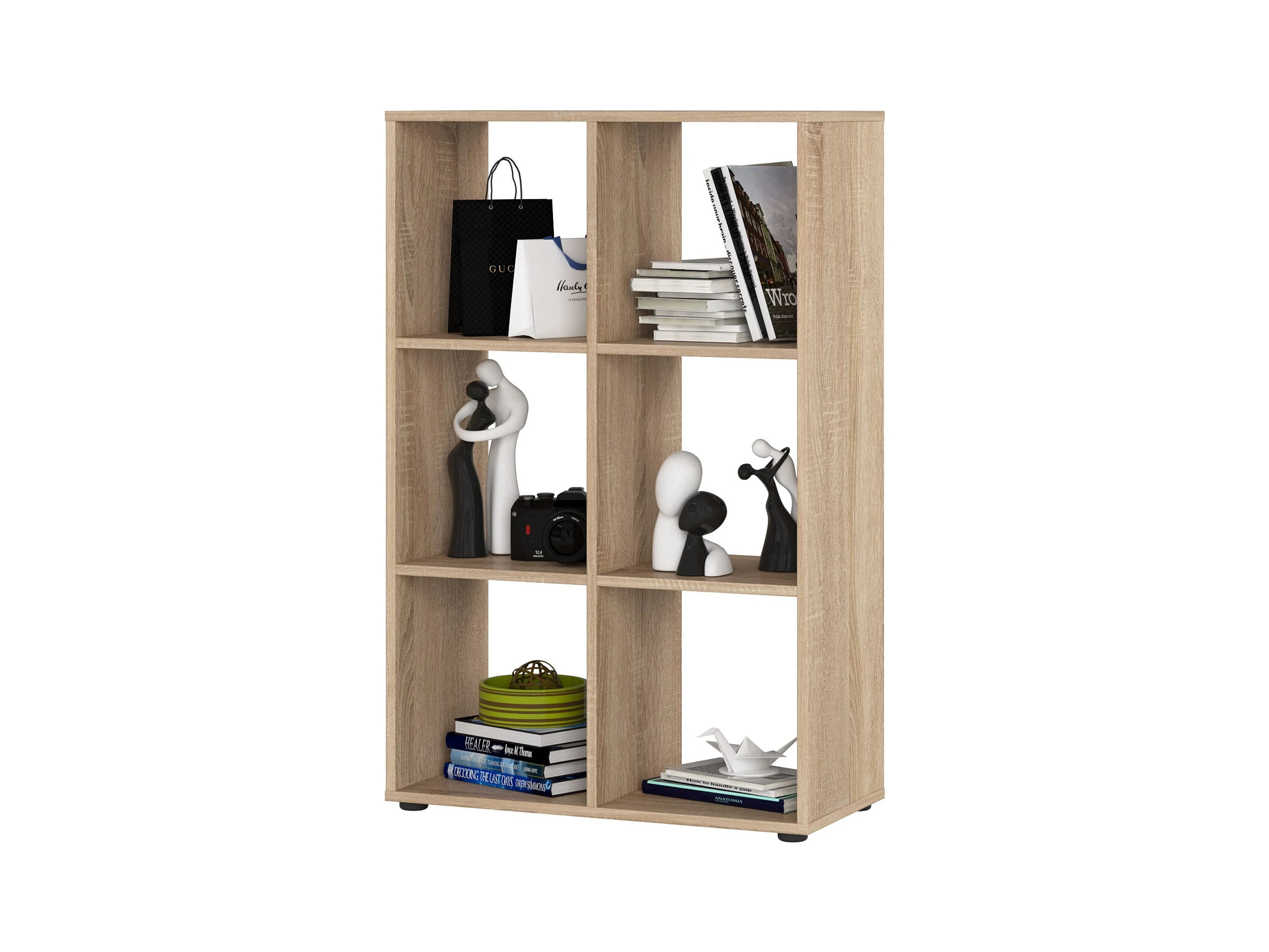 Stijlvolle Staande Boekenkast QUAD 6 Planken - Sonoma Eiken Afwerking