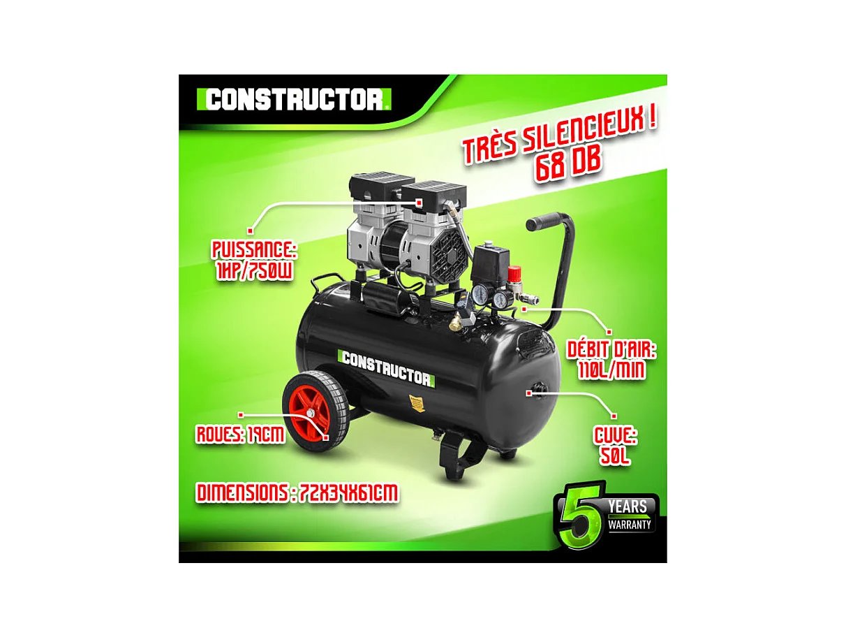 Stille compressor Constructor CTSAC8-50 - 750W - 50L