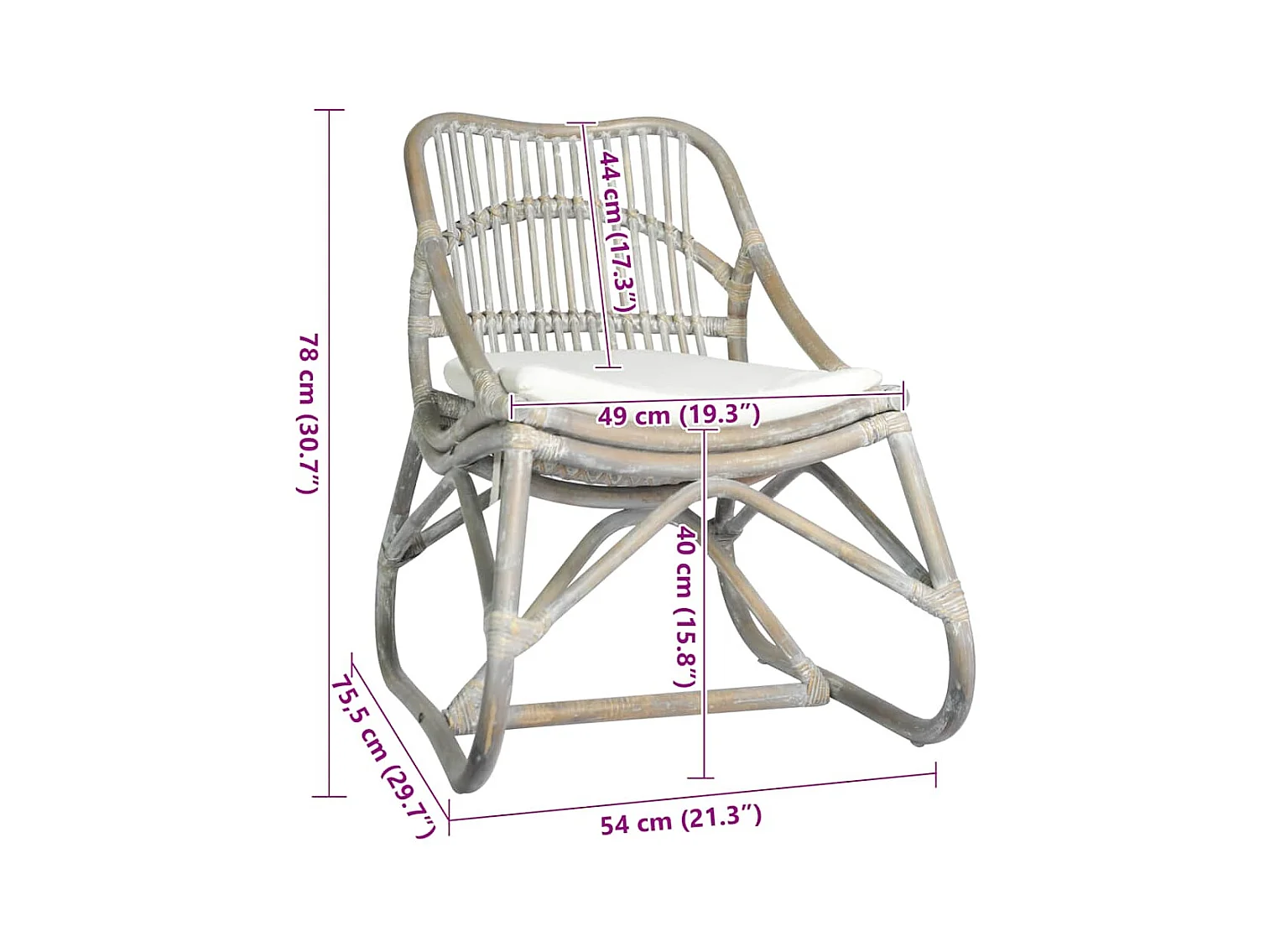 Relaxstoel natuurlijk kubu rattan en massief mahoniehout grijs