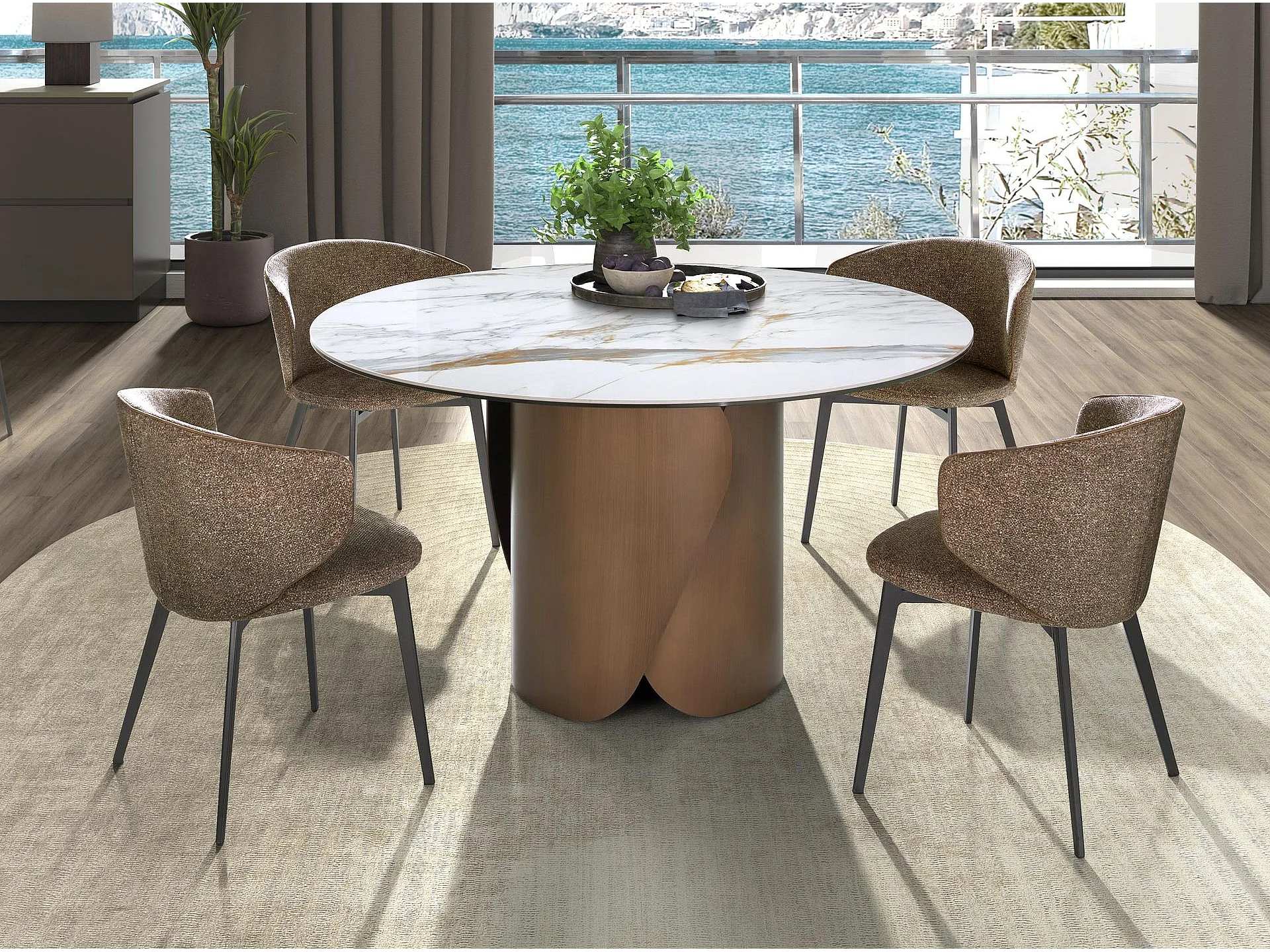 Stoel van gemarmerde stof bruin