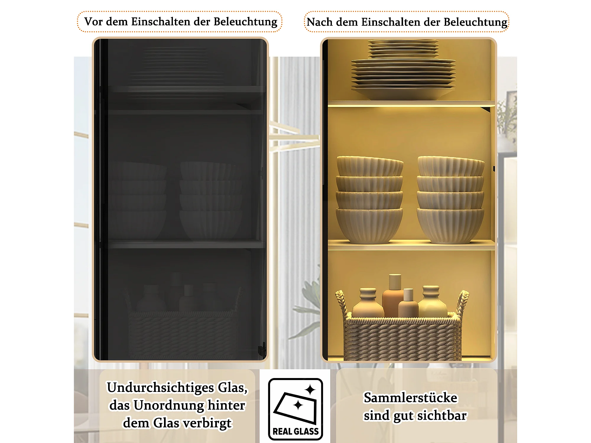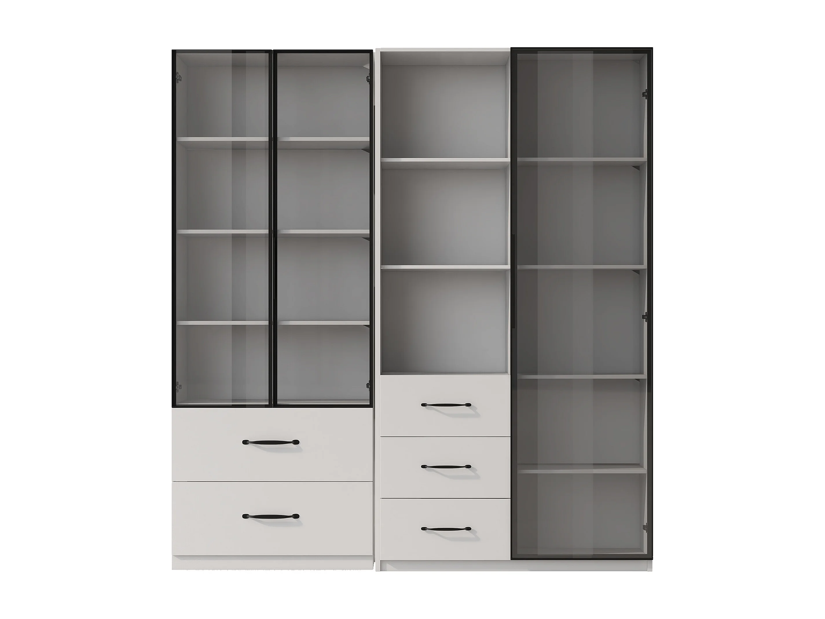 Stofbestendige glazen vitrine - 140 x 40 x 160 cm - met glas en open vakken + LED's - spaanplaat - wit