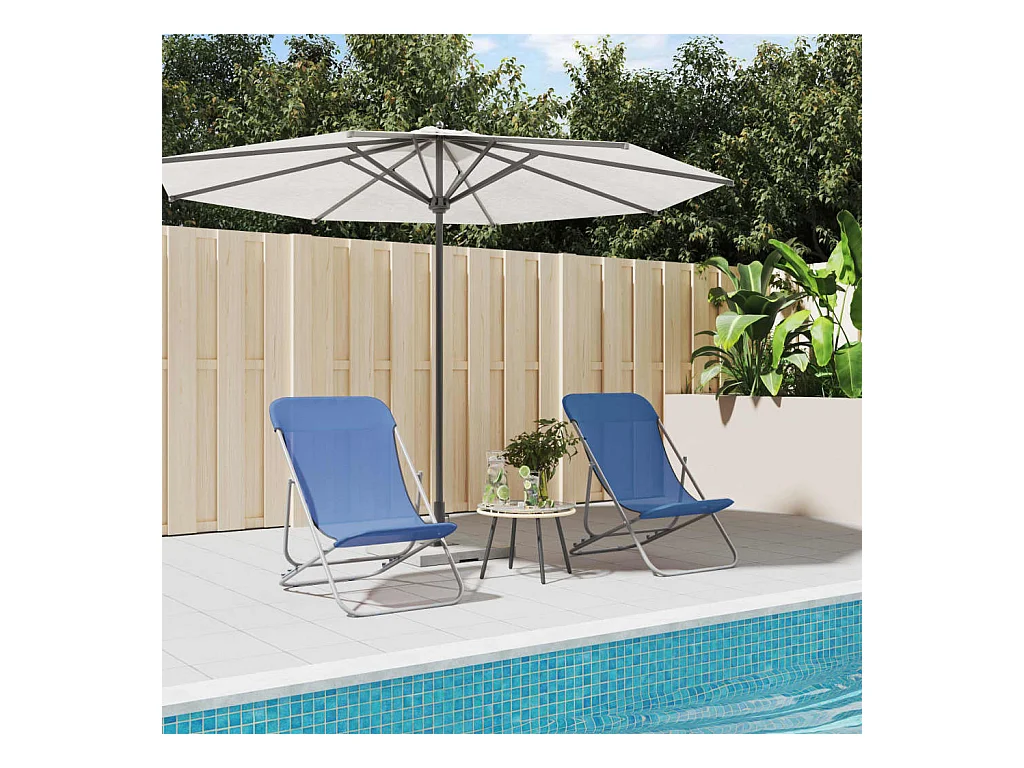 Strandstoelen 2 st textileen en gepoedercoat staal blauw