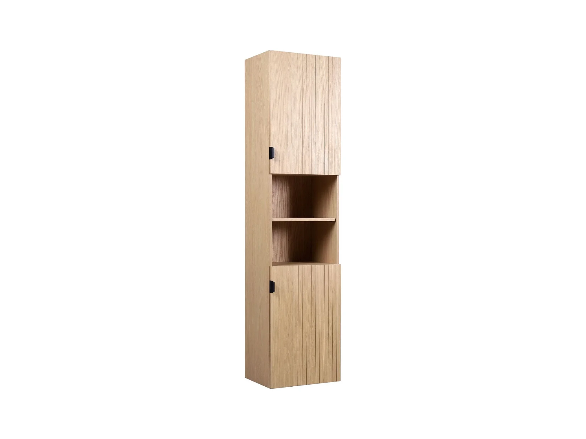 Badkamerkast met 3 open vakken in bamboe, 36x33x140 cm