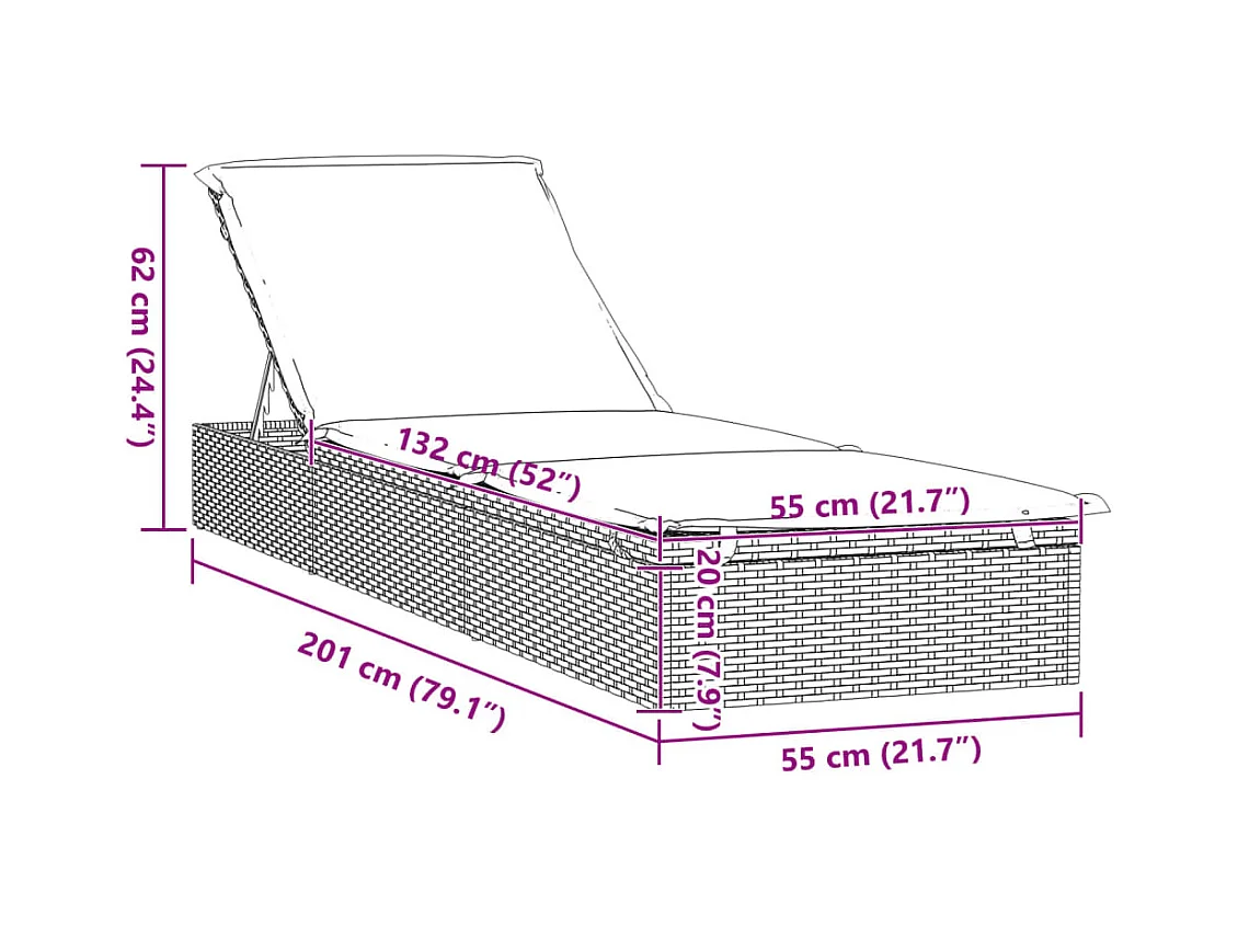 stuk chaise longue met grijs kussen 201x55x62cm geweven hars