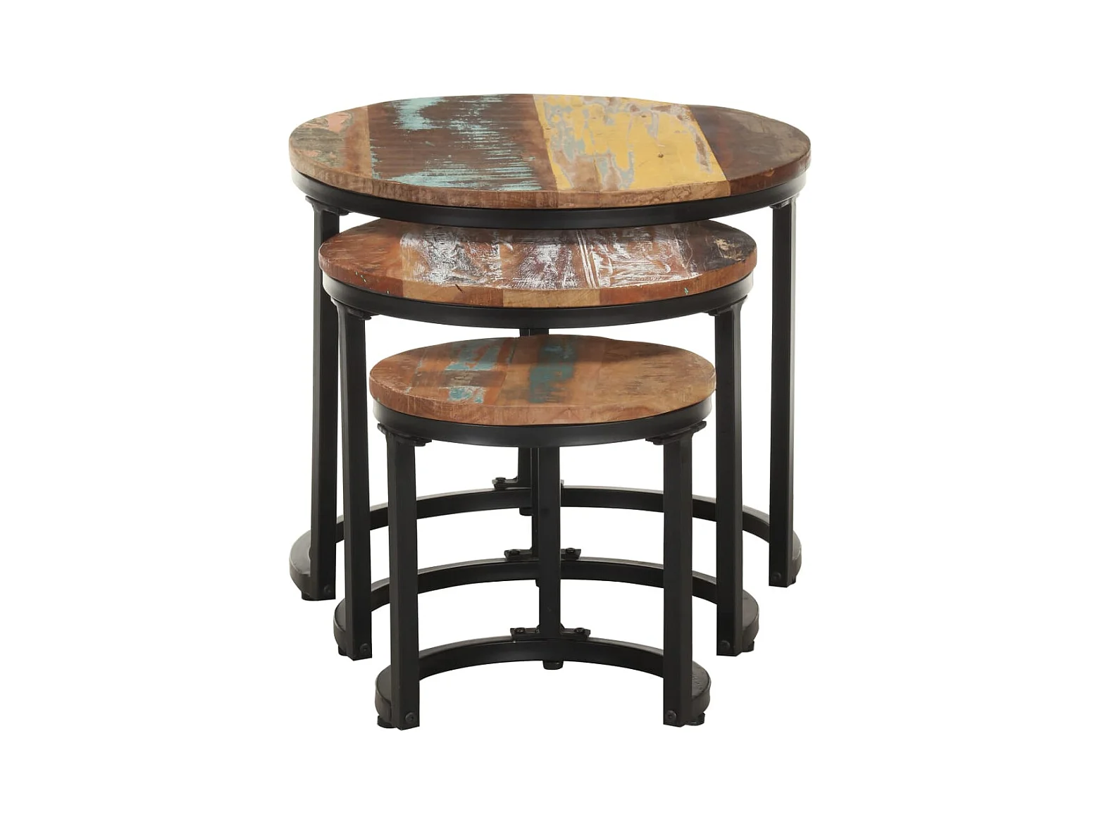 Veelkleurige salontafel 80x80x35 cm massief gerecycled hout