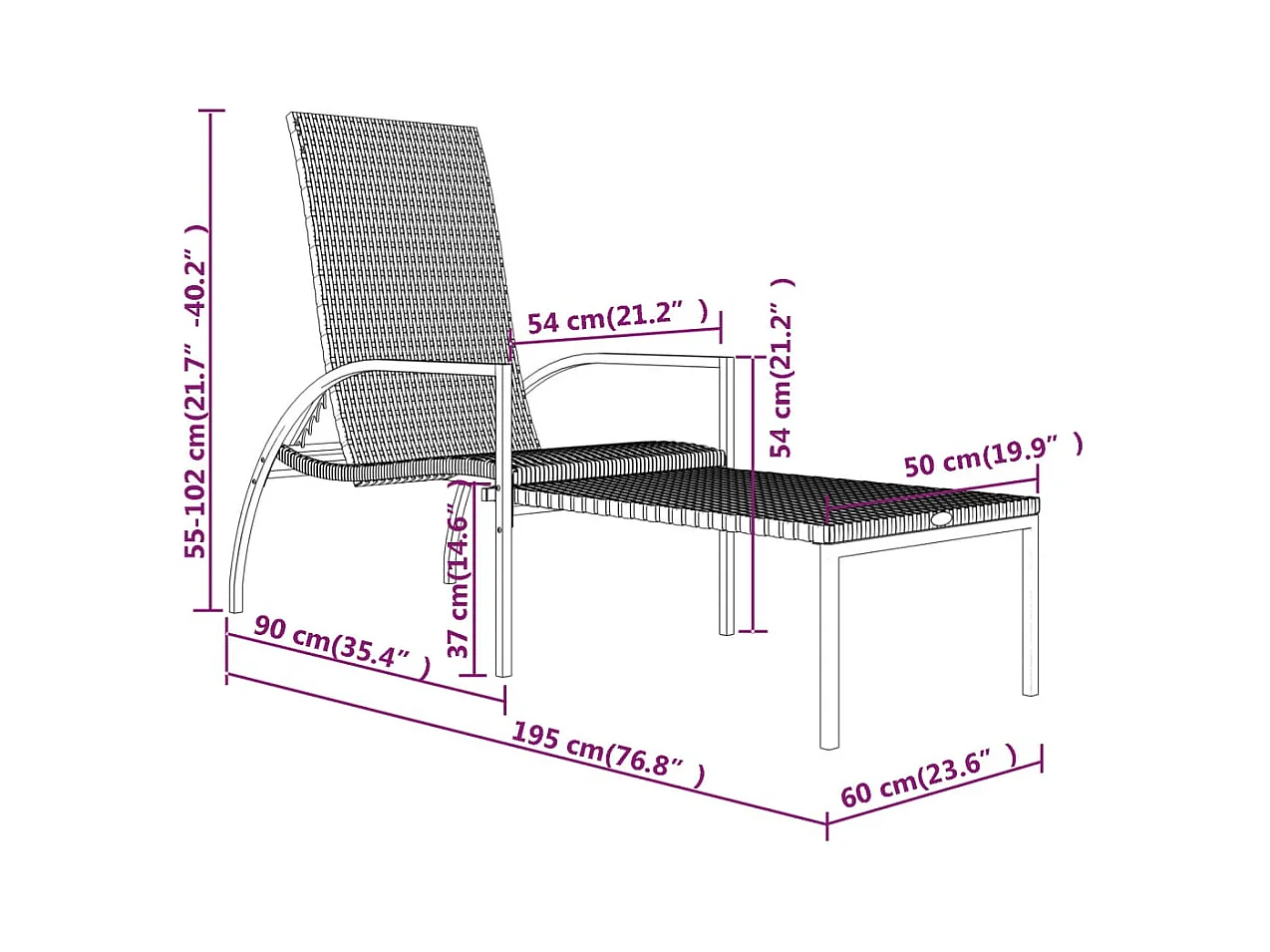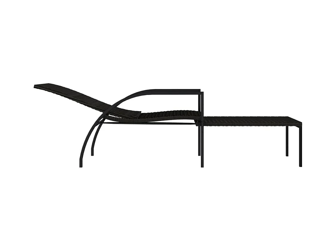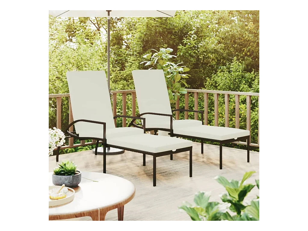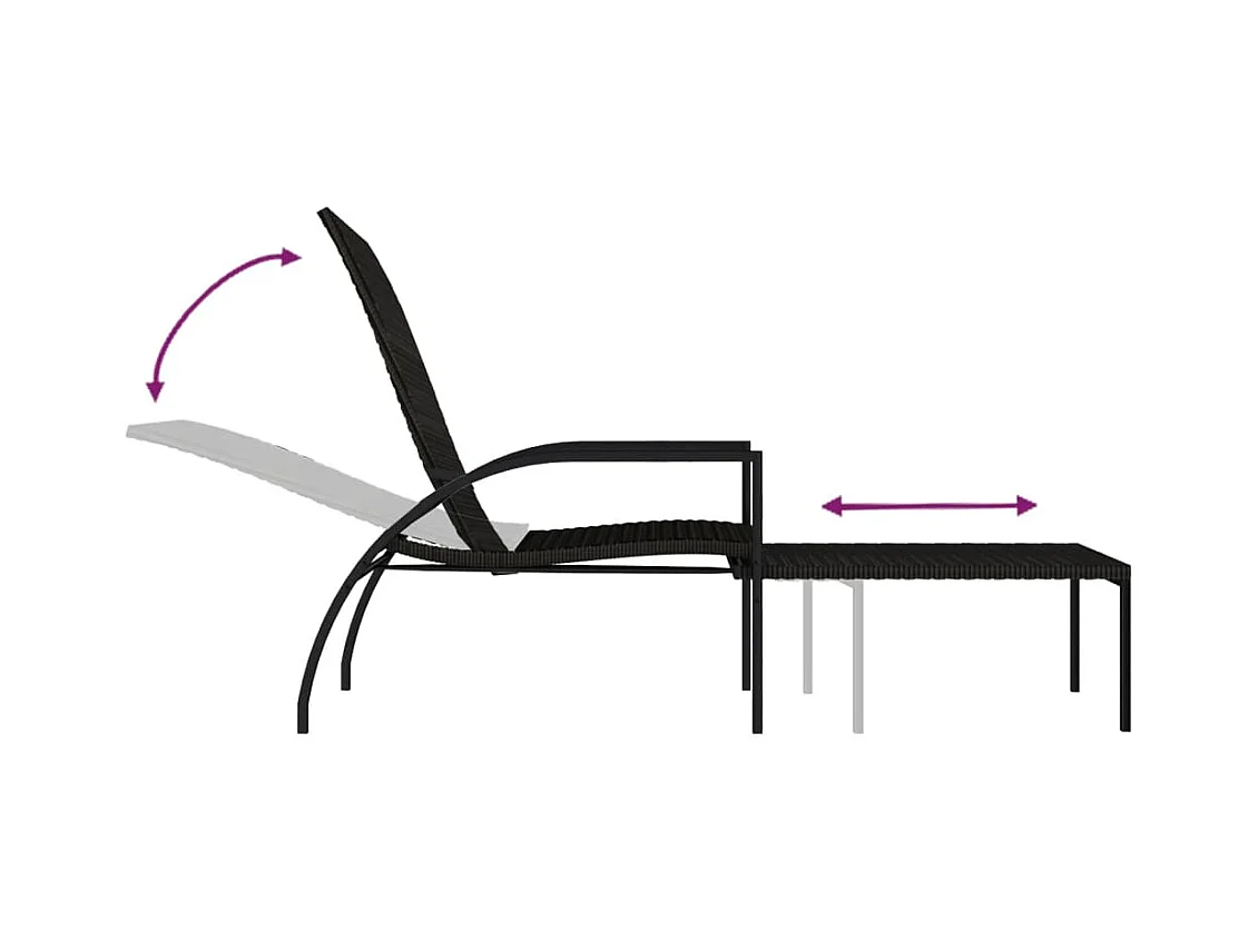 Chaise longue met zonnescherm en bruin geweven harskussen