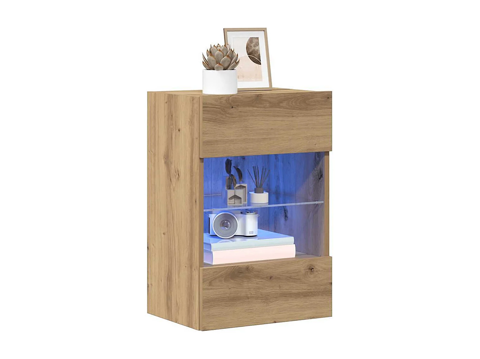 Wandmeubel met ledverlichting, bruin eiken, 40x30x60,5 cm