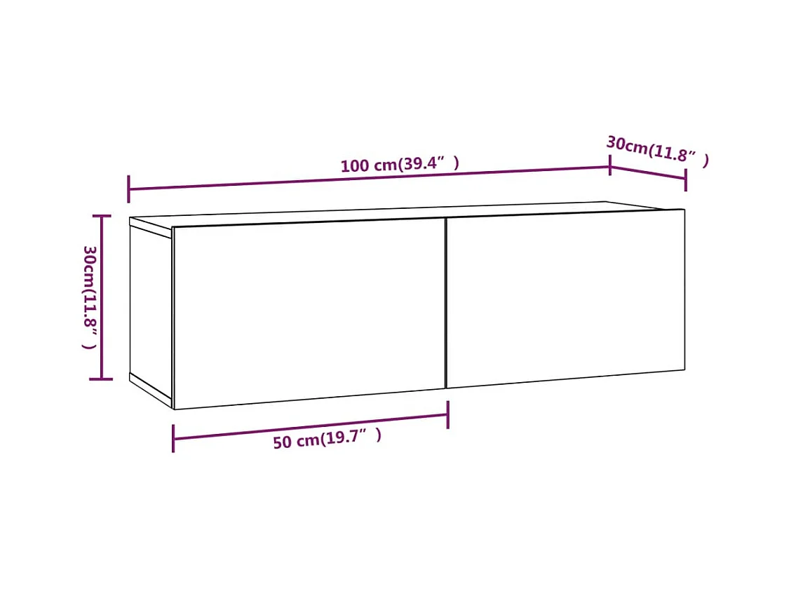 Wandmeubel TV Wandmeubel 2 stuks Zwart eiken 100 x 30 x 30 cm