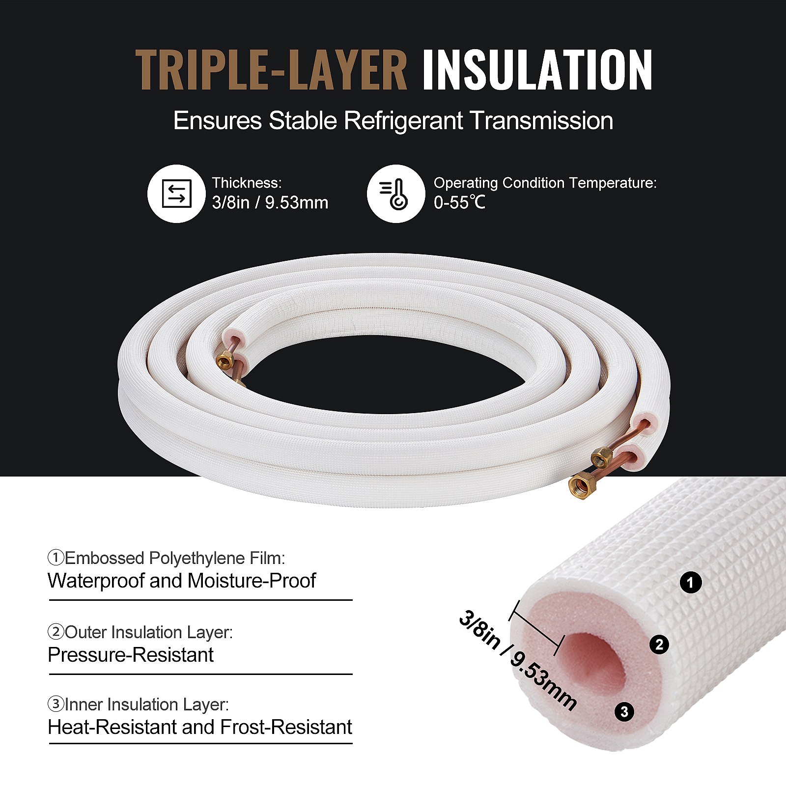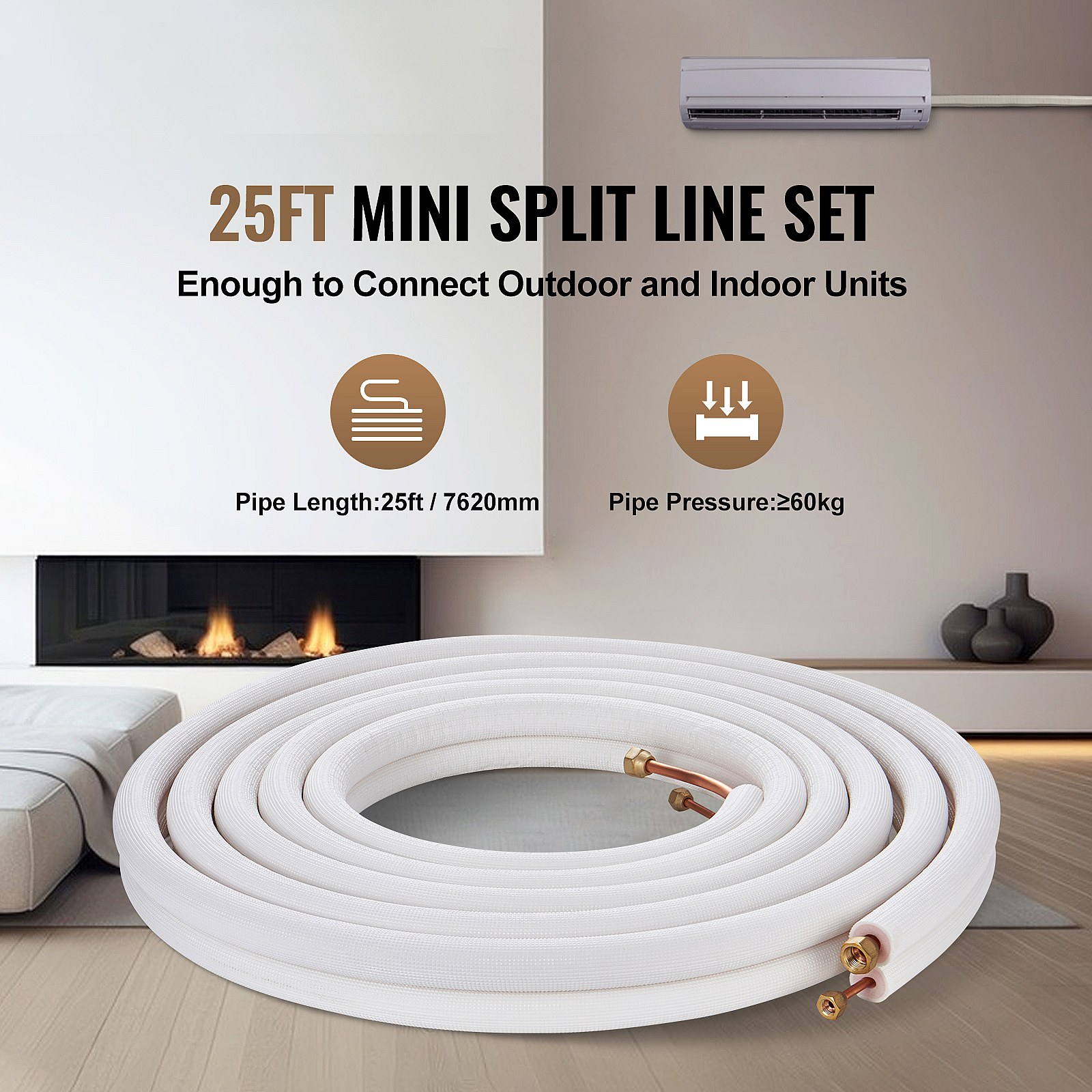 SucceBuy Mini-Split-Lijnen-Set 6,4 x 9,5 x 7620 mm Koperpijp voor Airco met aansluitkabel
