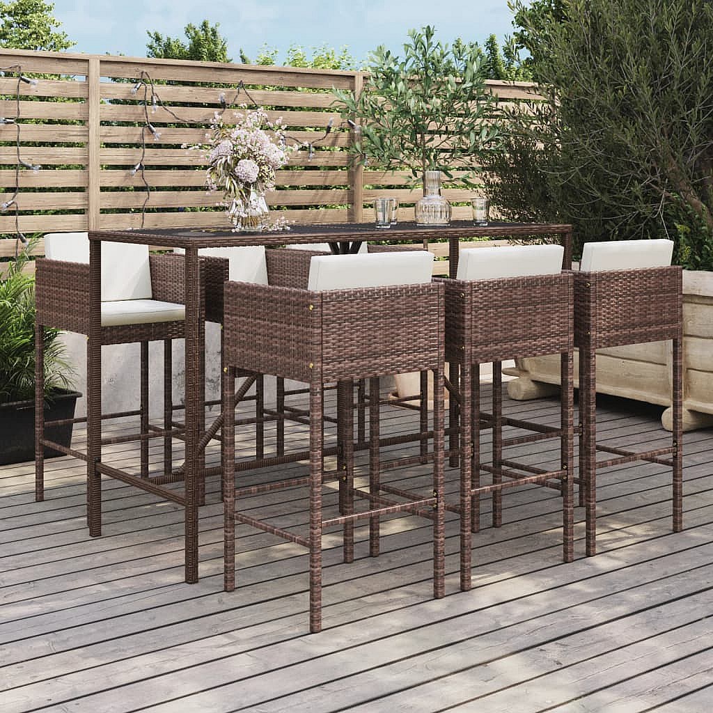 Laurent-Paul-Francis 7-delige Tuinbarset met kussens poly rattan bruin