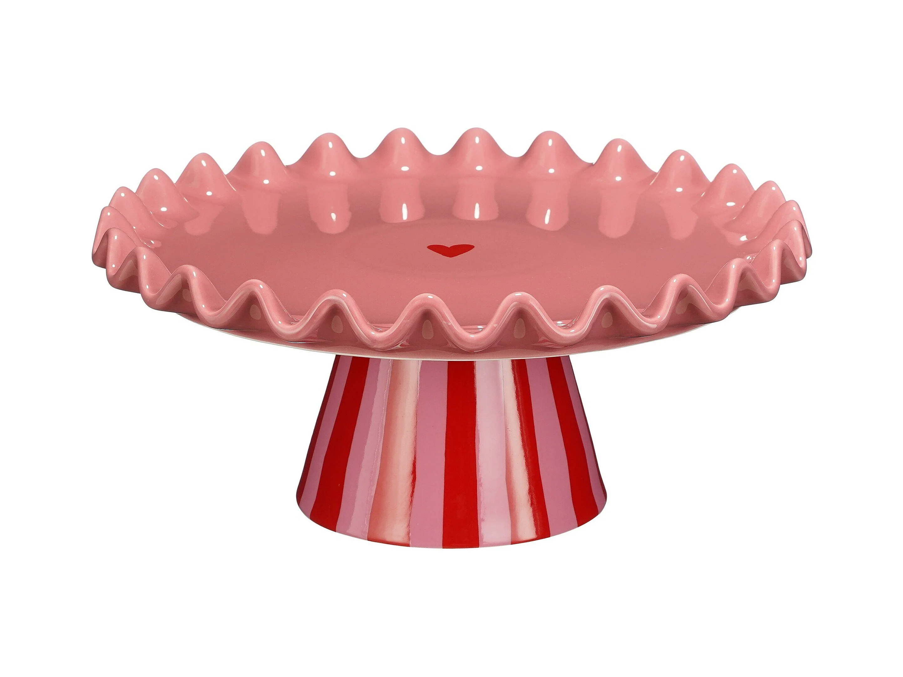 Taartplateau van keramiek - 30 x 30 x 13 - Roze, rood - BELLA