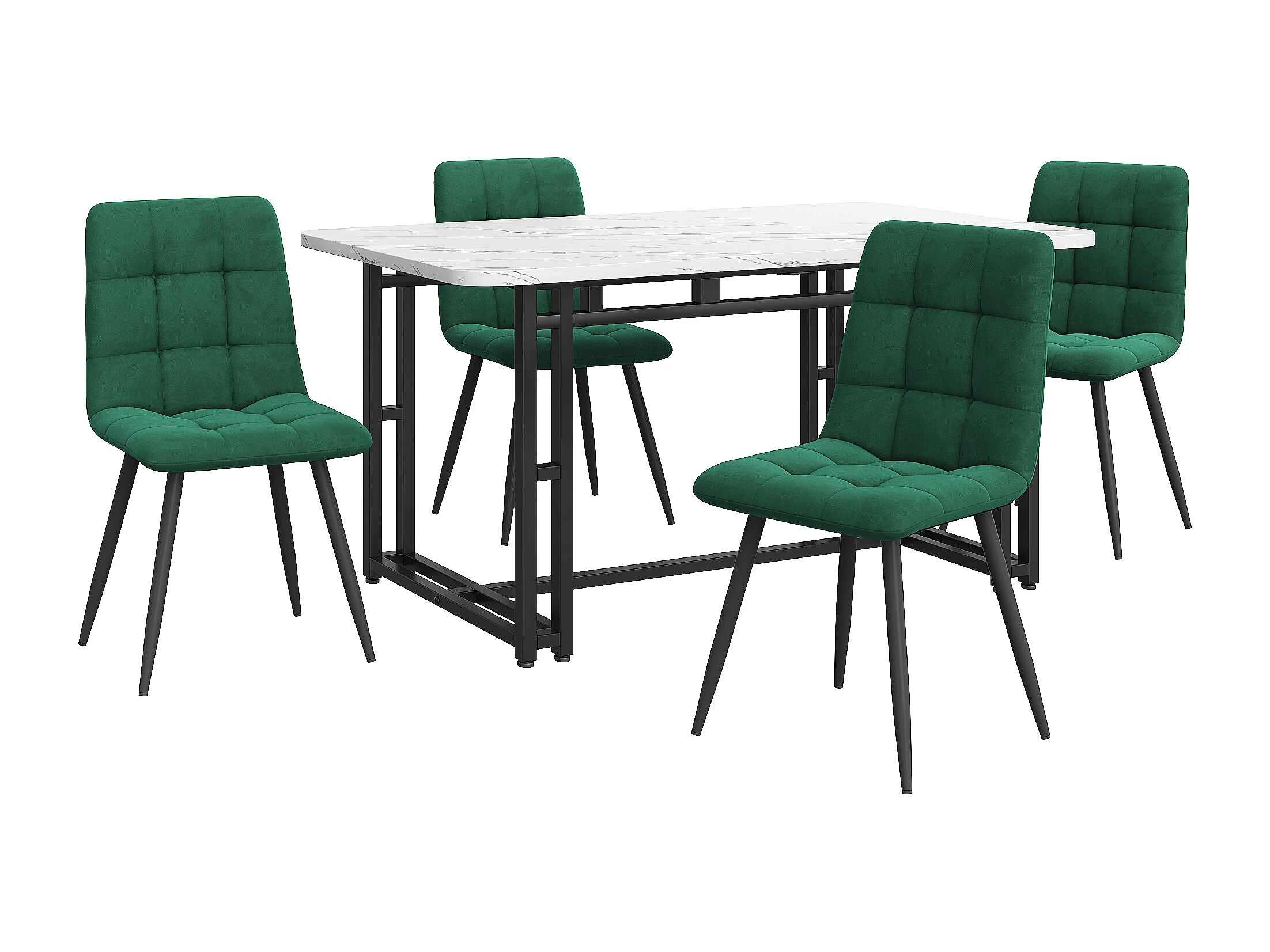 Tafel en 4 stoelen - Fluweelzachte stoelen - Donkergroen en wit