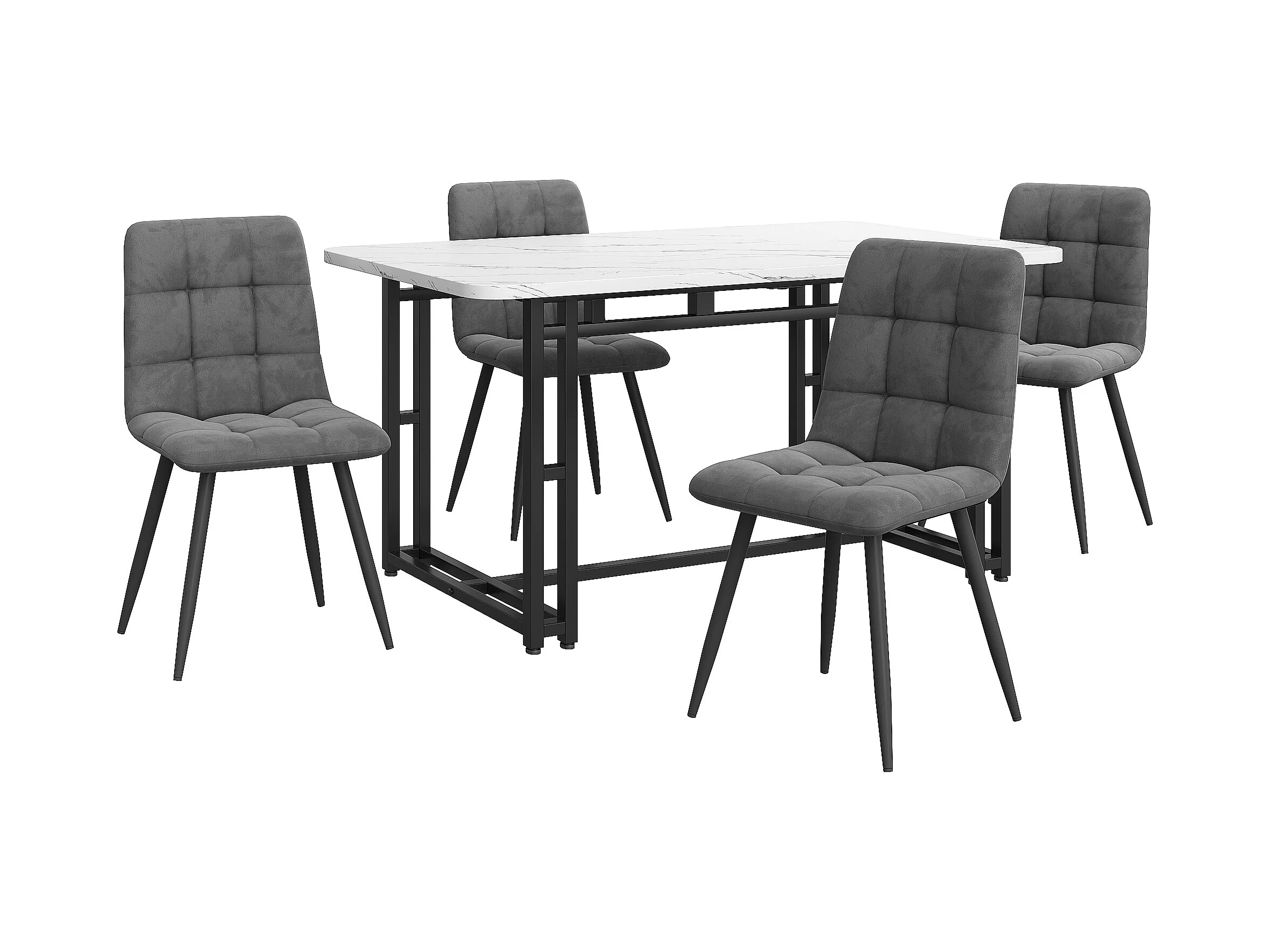 Tafel en 4 stoelen - Fluweelzachte stoelen - Grijs en wit