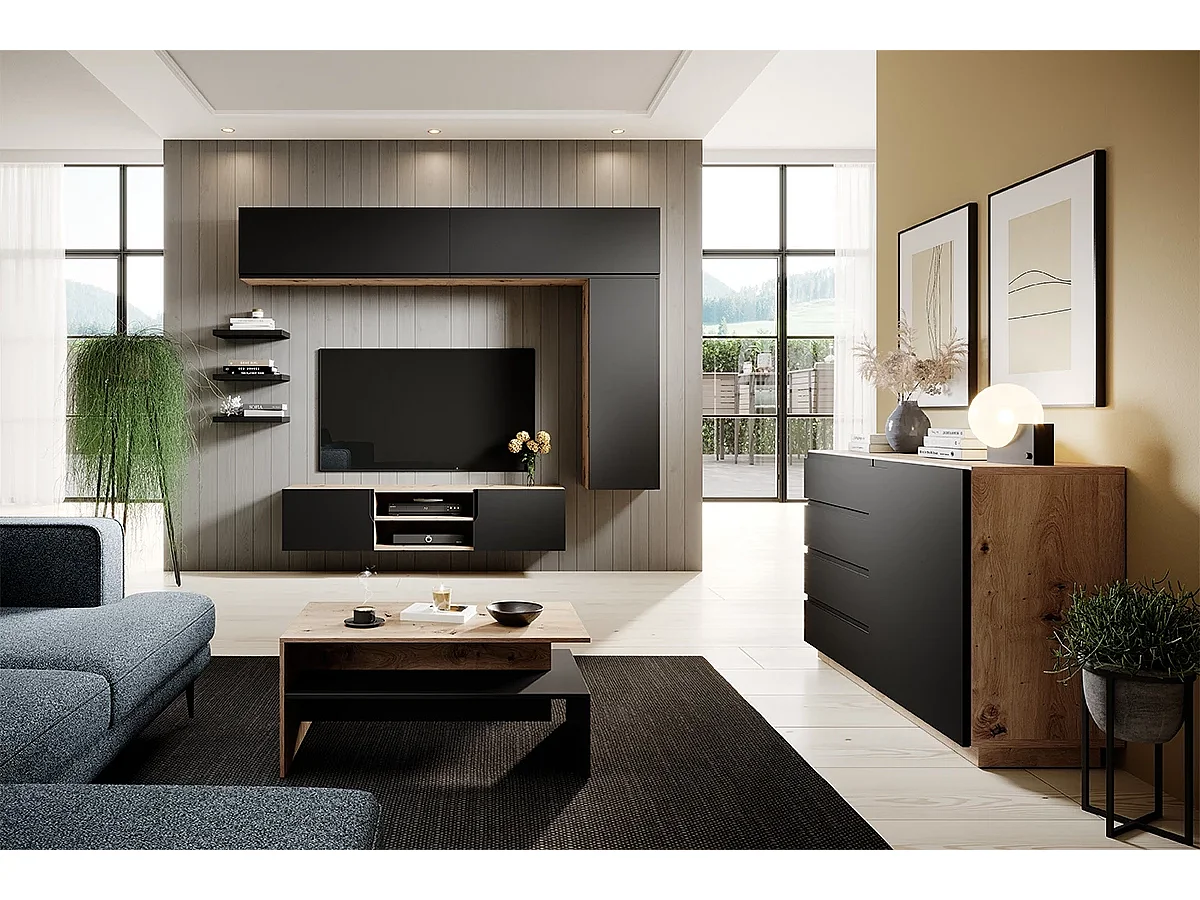 Tafel laag in gelaagd zwart en houtlook 100x60 cm