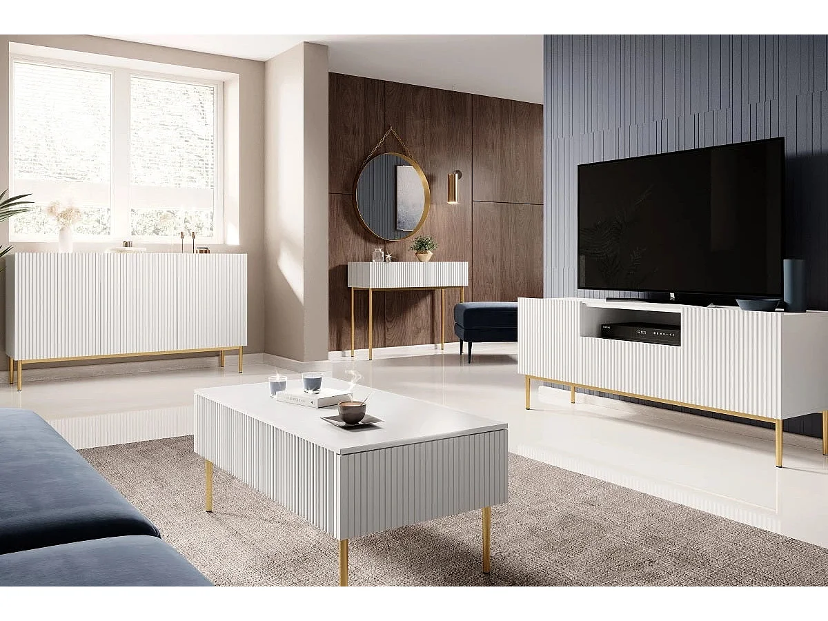 Hoogglans dressoir met 2 deuren + 3 laden + LED's - 140 x 60 x 48 cm - spaanplaat - wit
