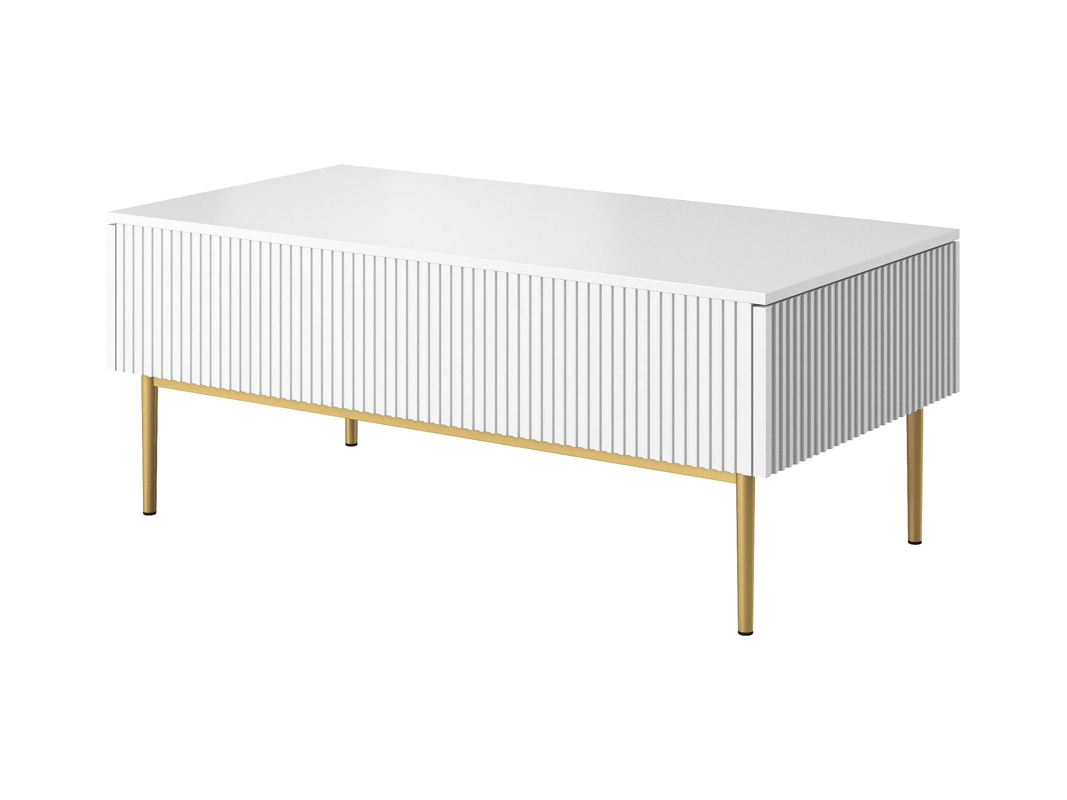 Glanzende salontafel - 80 x 50 x 35,5 cm - uitschuifbaar blad + 1 lade + LED's - MDF - wit