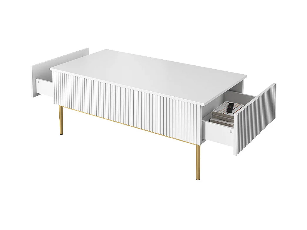 Moderne salontafel - 105 x 50 x 35 cm - met 2 lades + LED's - glazen blad - spaanplaat - wit