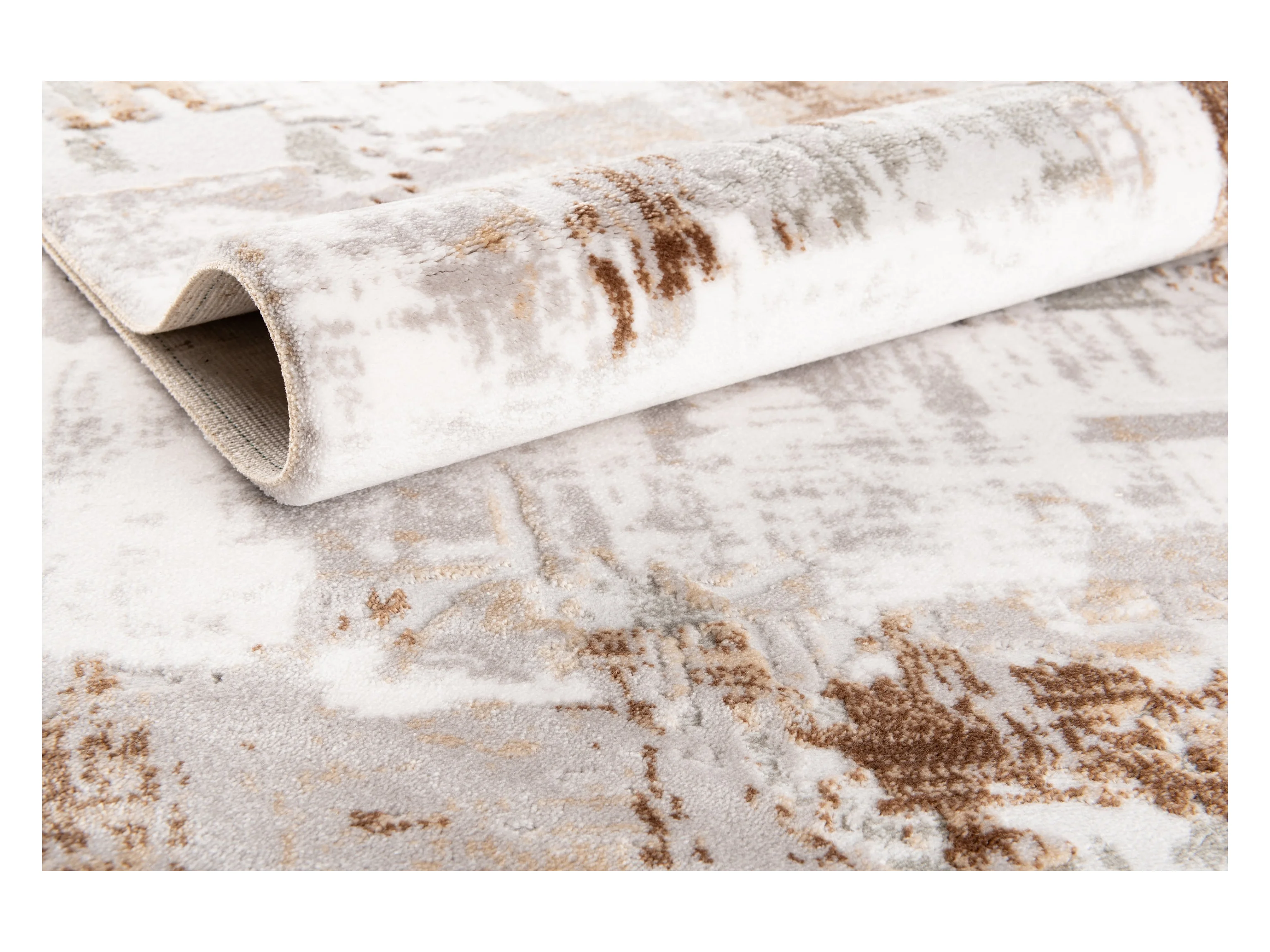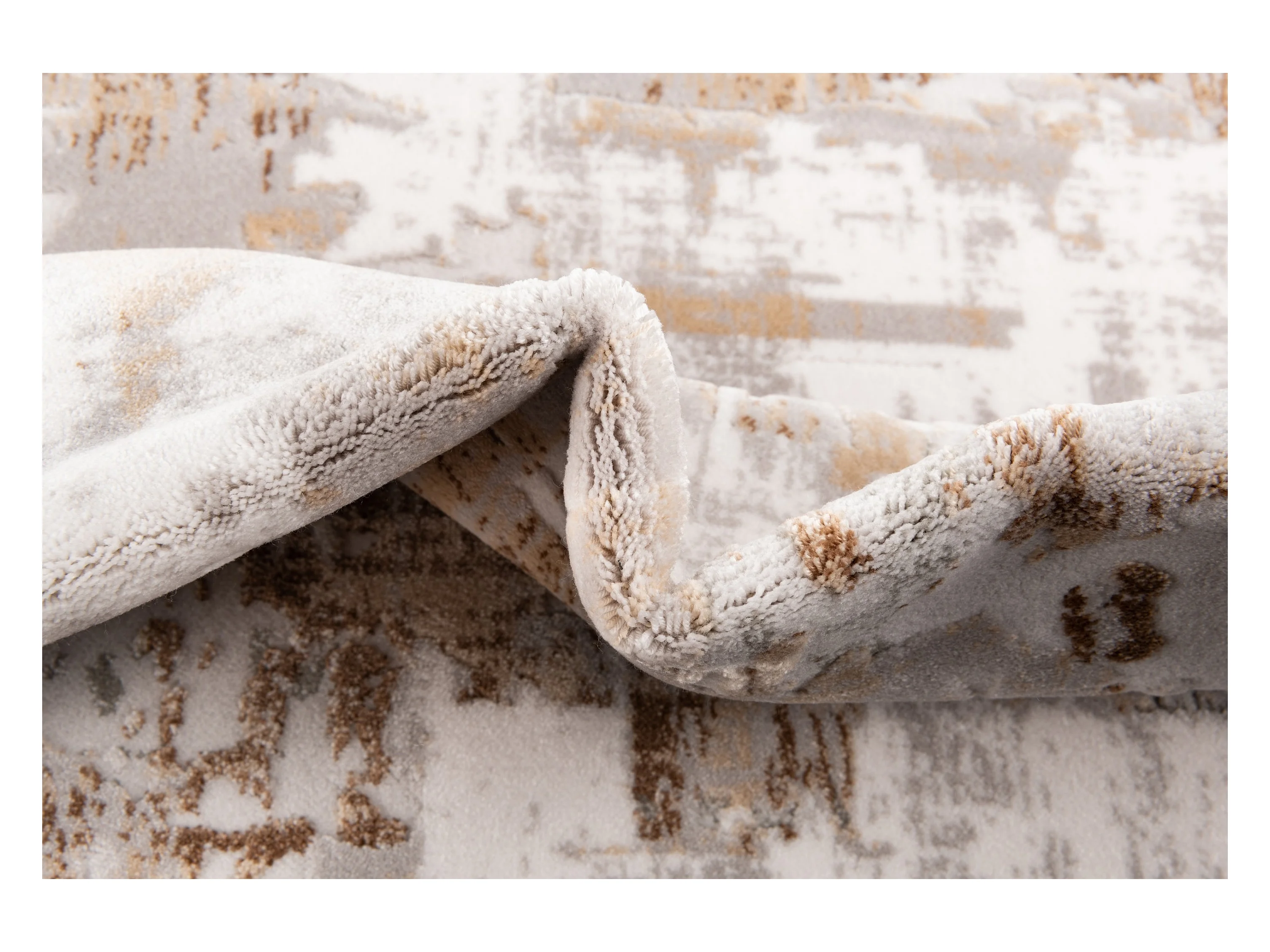 Moderne ronde bijzettafel met 2 niveaus en C-vormig frame, kleine salontafel, wit/goud (1)