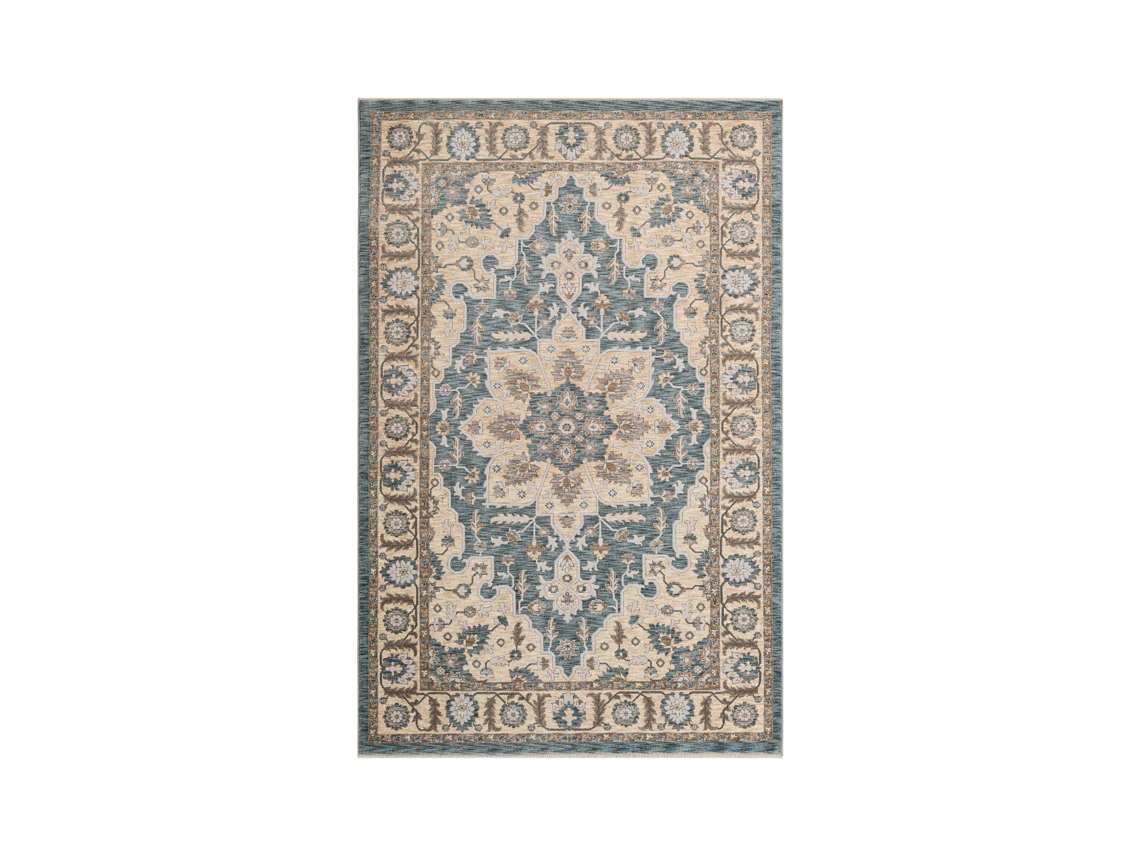 Tapijt met rand en bloemmotief 160x230 cm turquoise Flomi