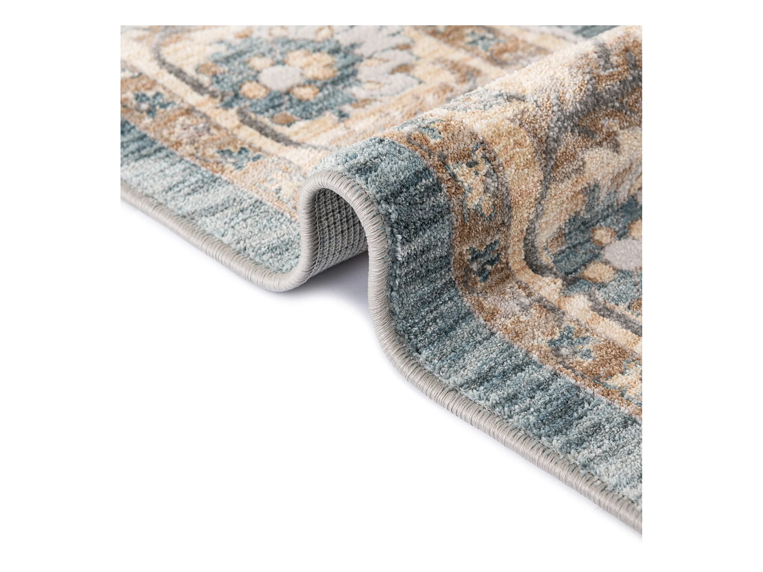Tapijt met rand en bloemmotief 70x120 cm turquoise Flomi