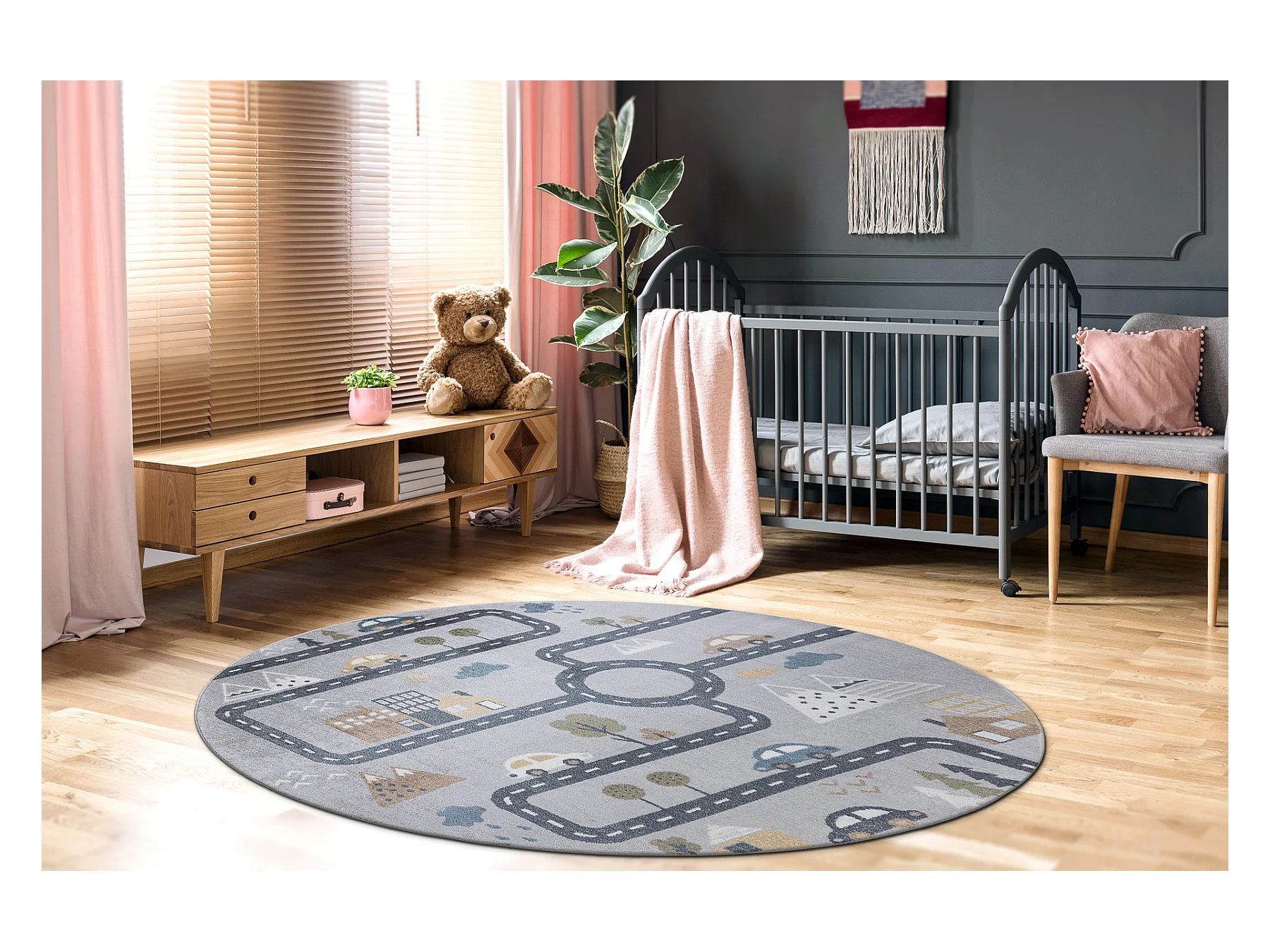 Tapijt BONO 726 cirkel straat, stad lichtgrijs/crème cercle 120 cm