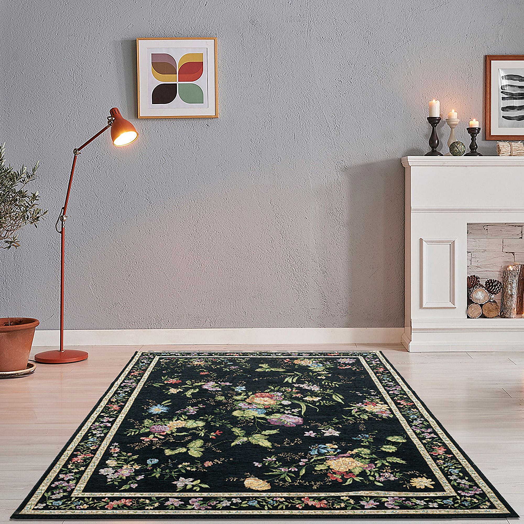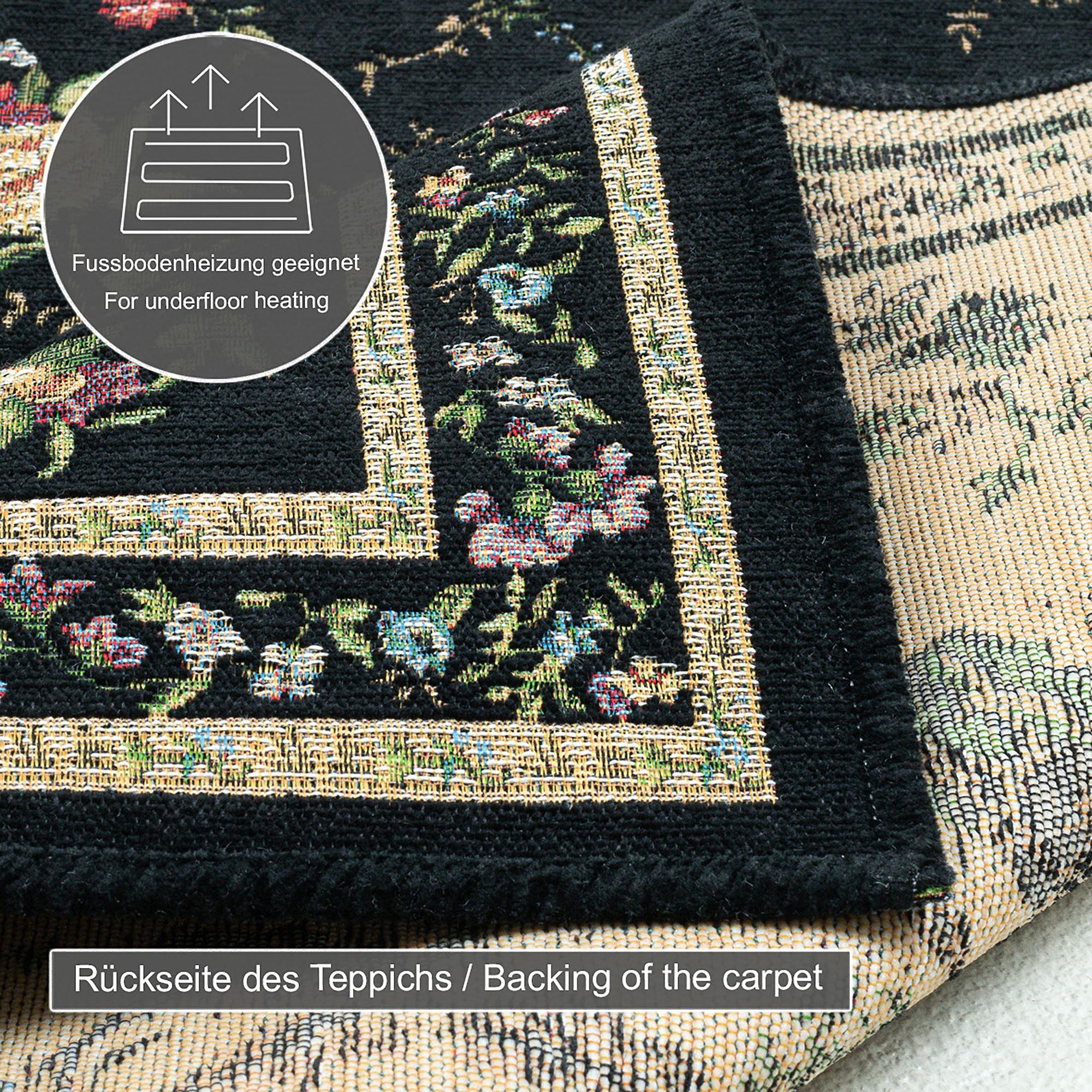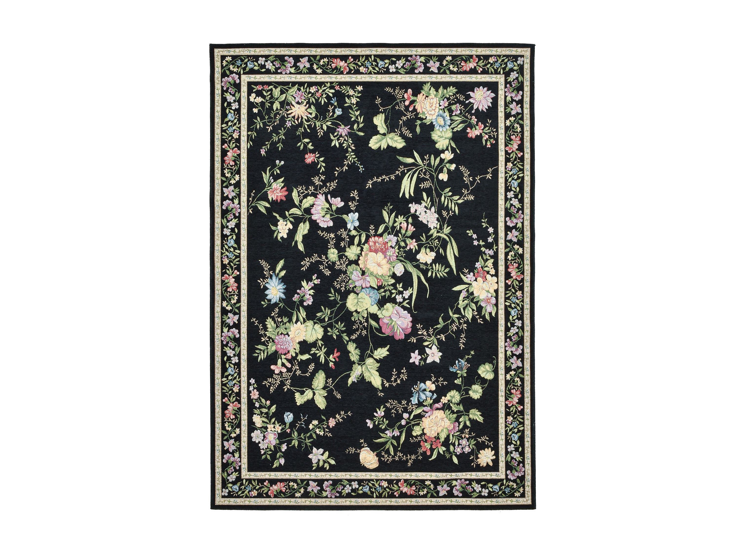 Tapijt met rand en bloemmotief 160x230 cm zwart Flomi