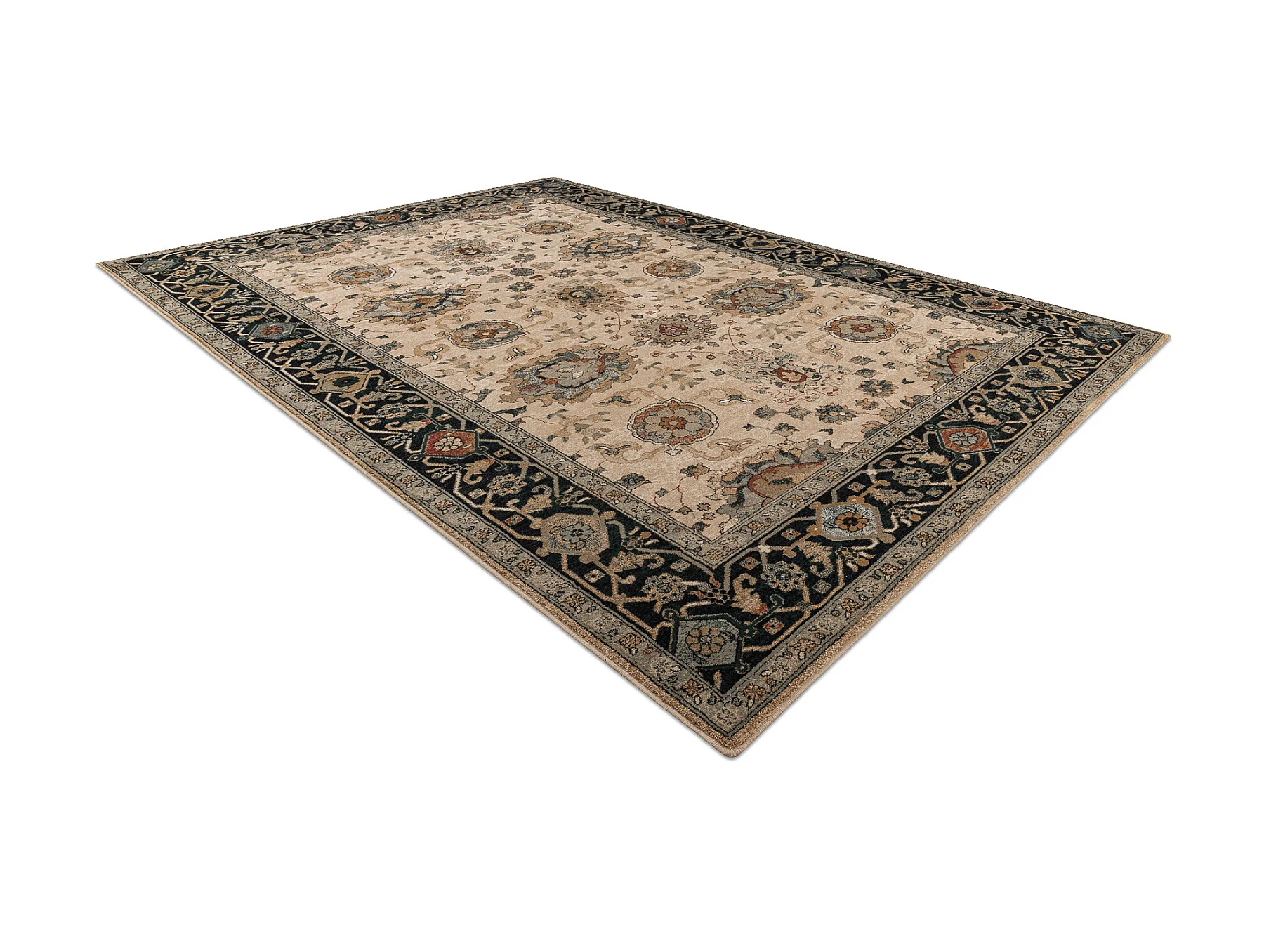 Wollen tapijt OMEGA AVILA Ornament frame zand beige 170x235 cm