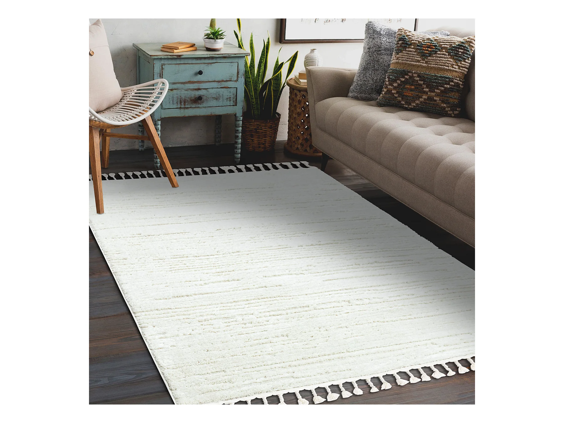 Tapijt SEVILLA AC53B strips , prążki wit Kwastjes berbery Marokkaans 200x290 cm