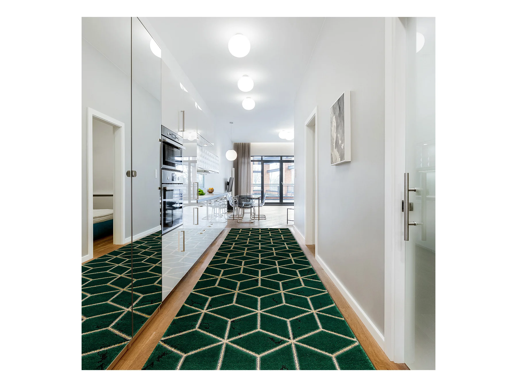 Tapijtloper EMERALD exclusief 1014 glamour, stijlvol kubus fles groen 80x420 cm