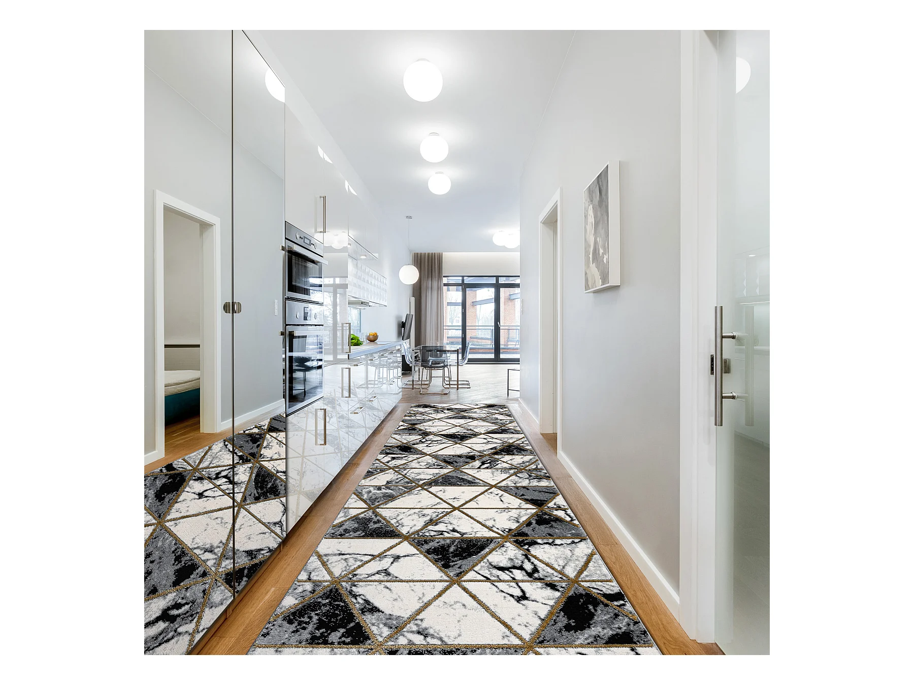 Tapijtloper EMERALD exclusief 1020 glamour, stijlvol marmer, driehoeke 120x330 cm